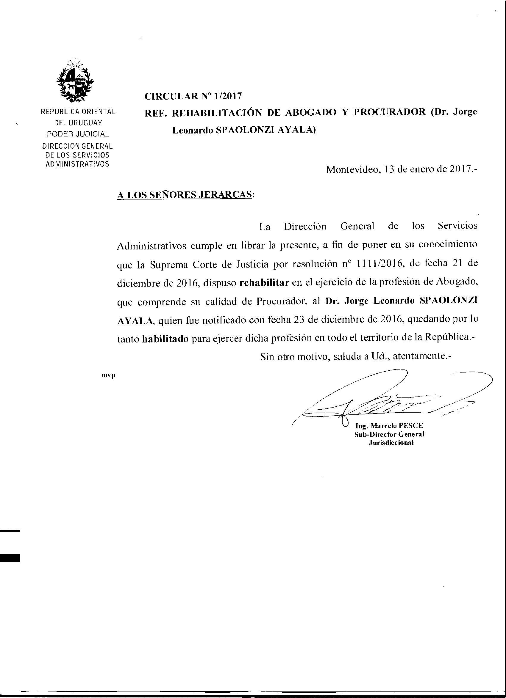 001/2017 - Rehabilitación de Abogado y Procurador