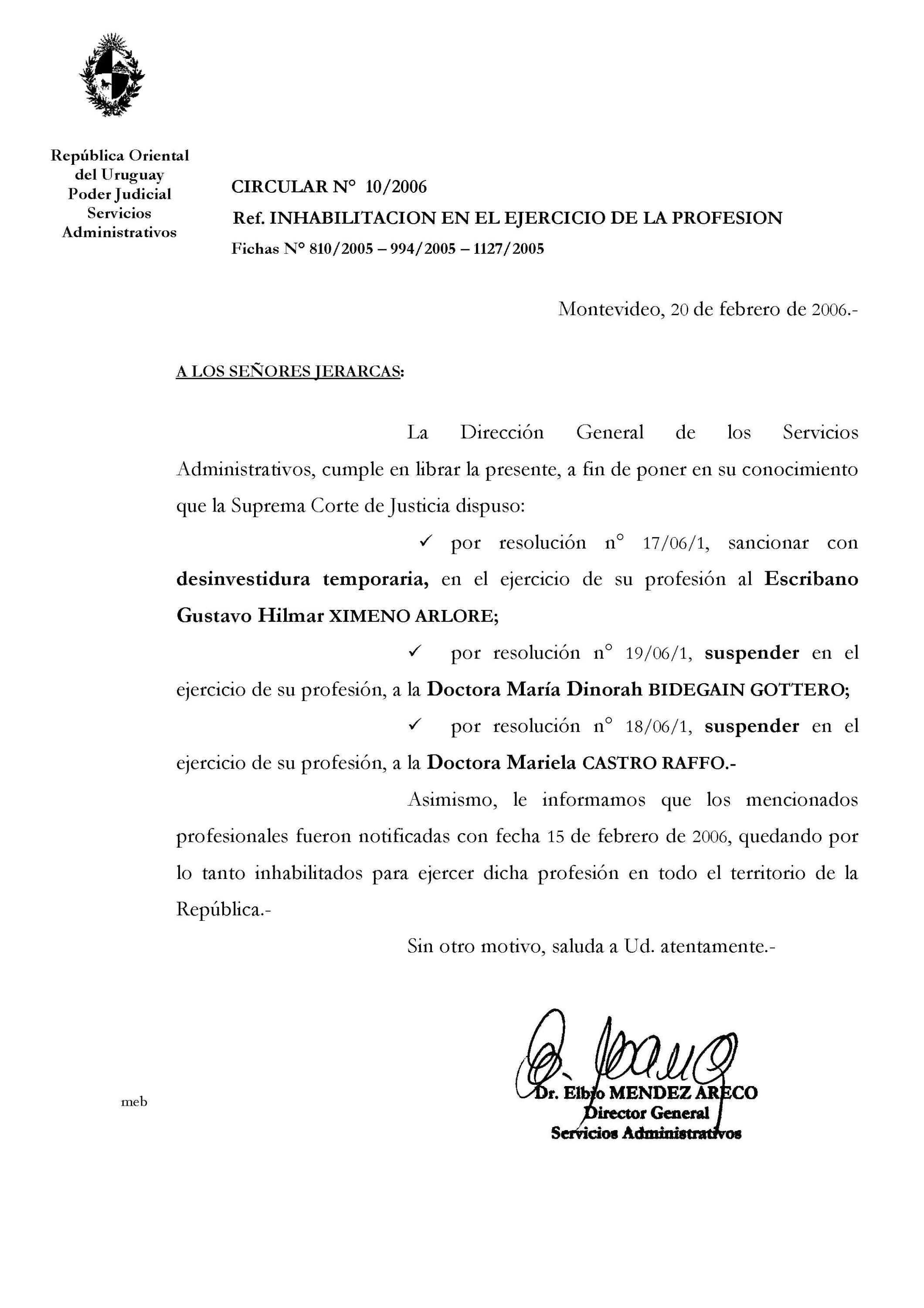 010/2006 - Inhabilitación de Abogado