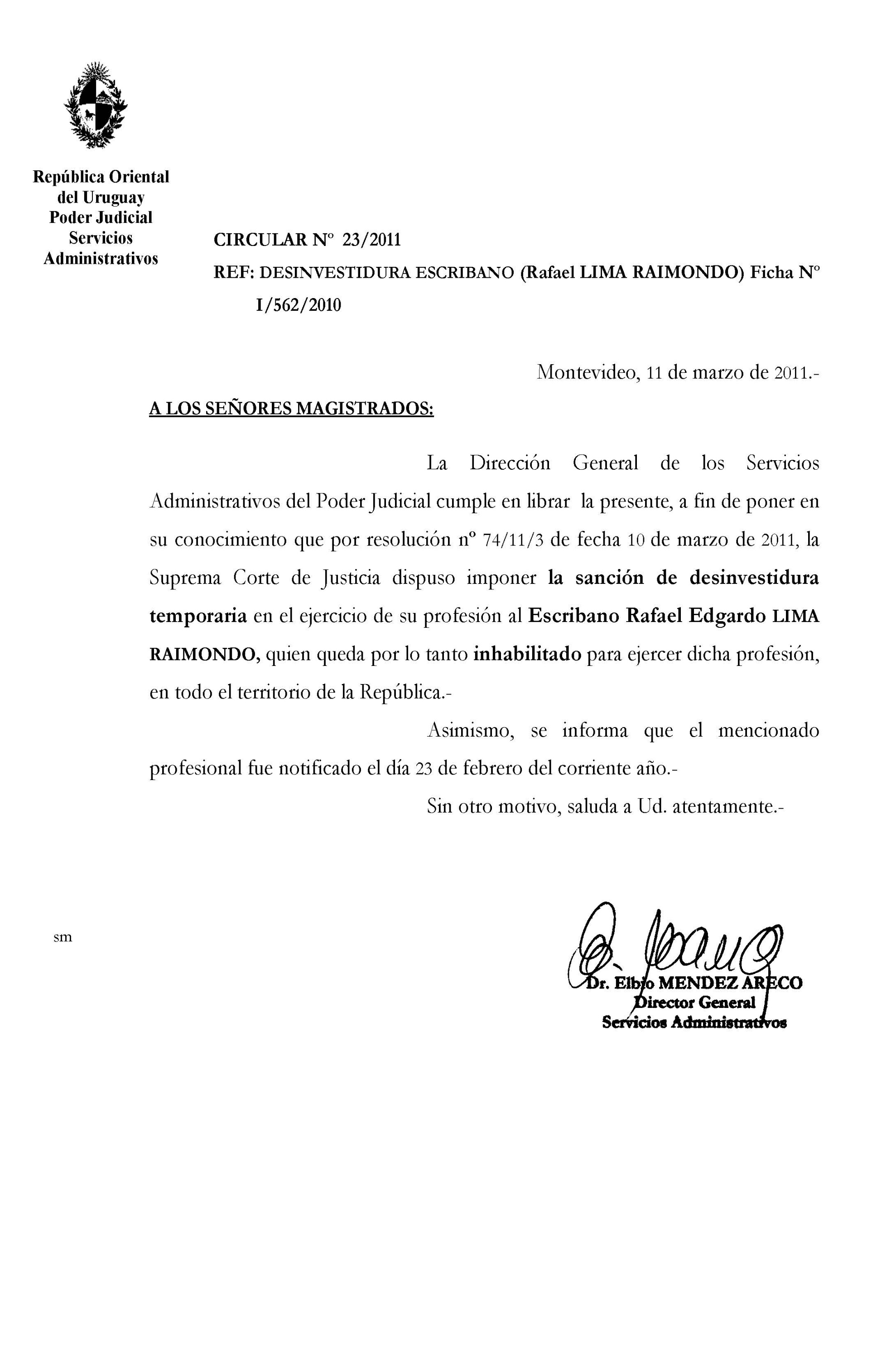 023/2011 - Desinvestidura de Escribano