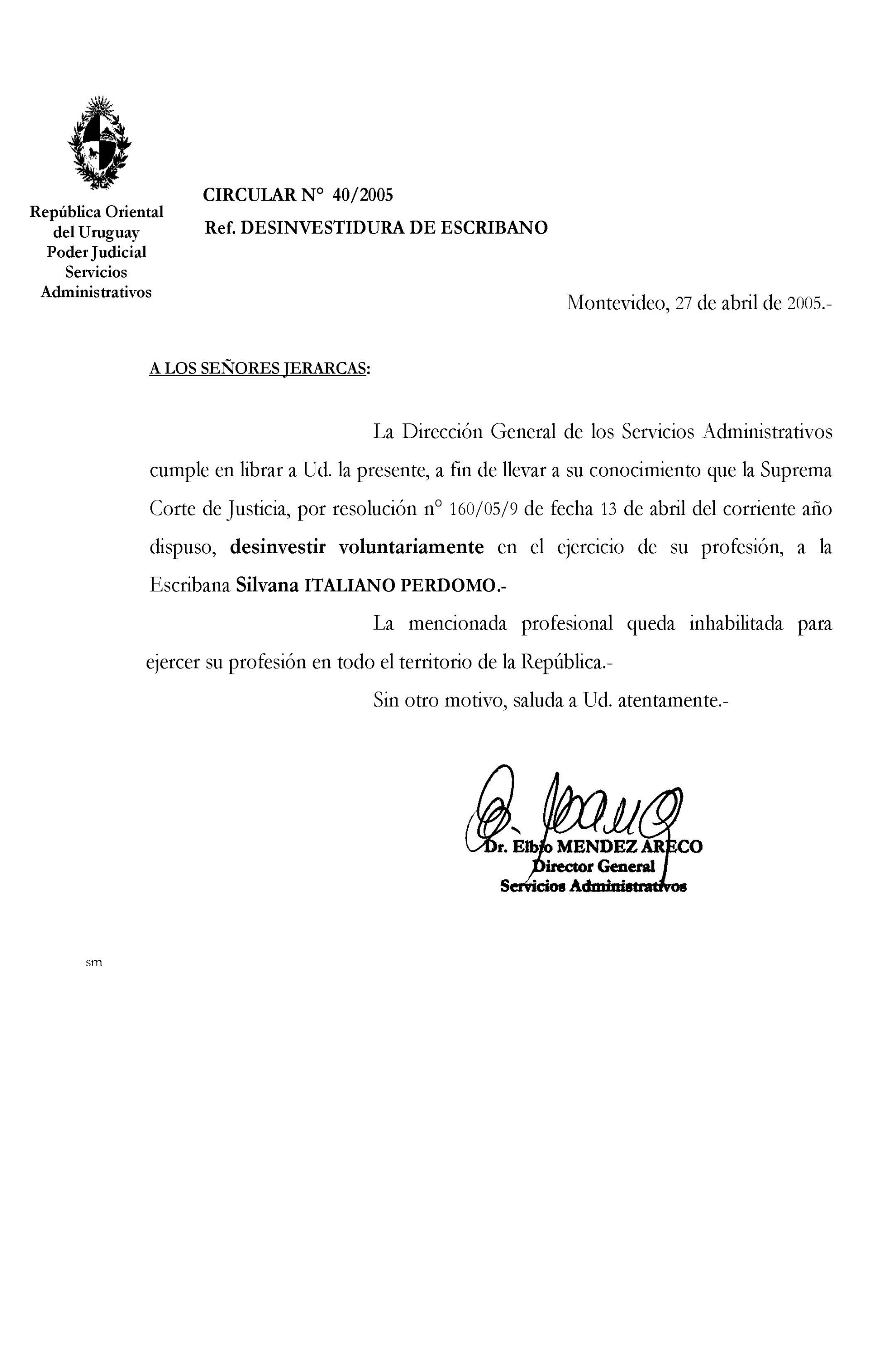 040/2005 - Desinvestidura voluntaria de Escribano