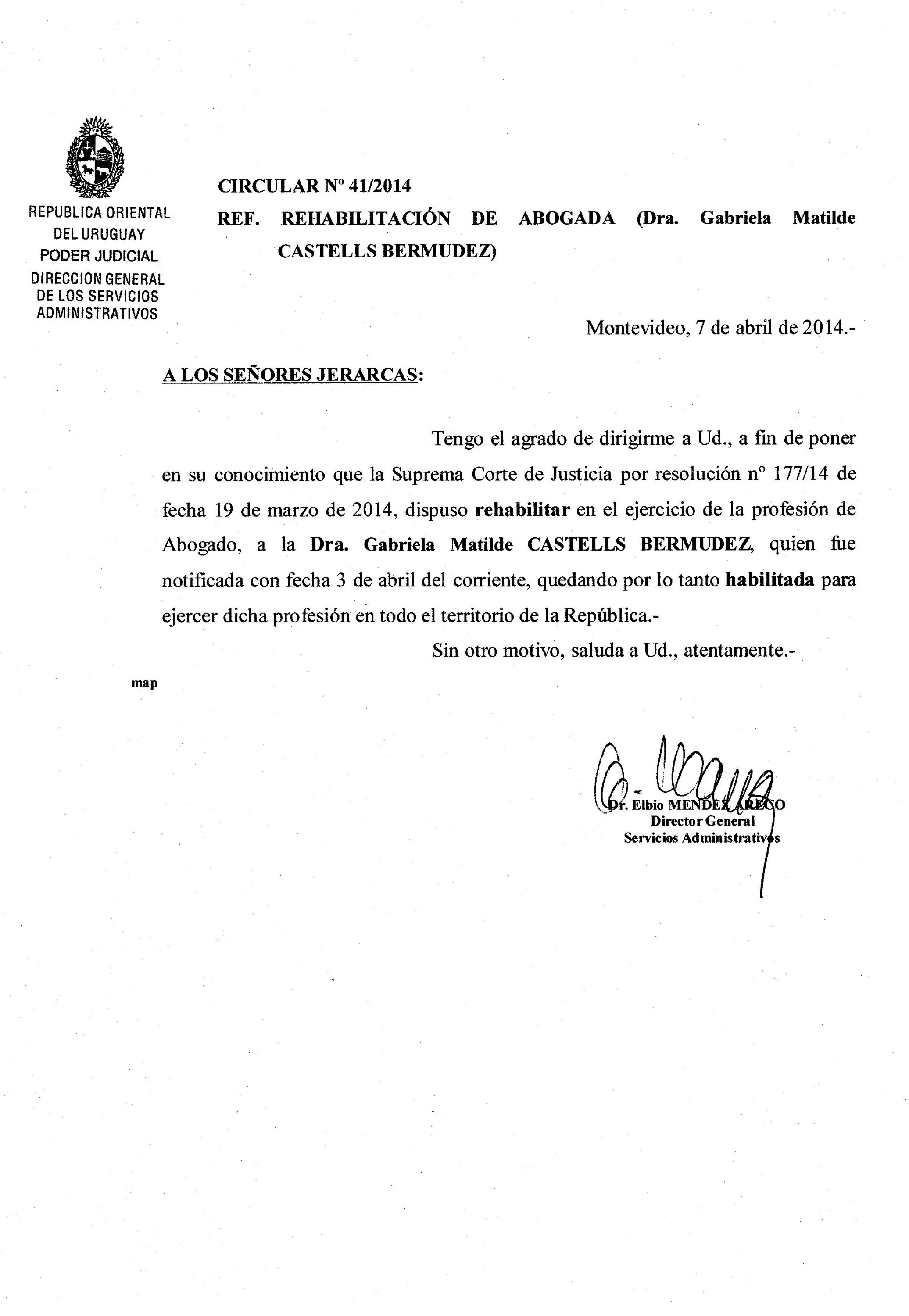 041/2014 - Rehabilitación de Abogada