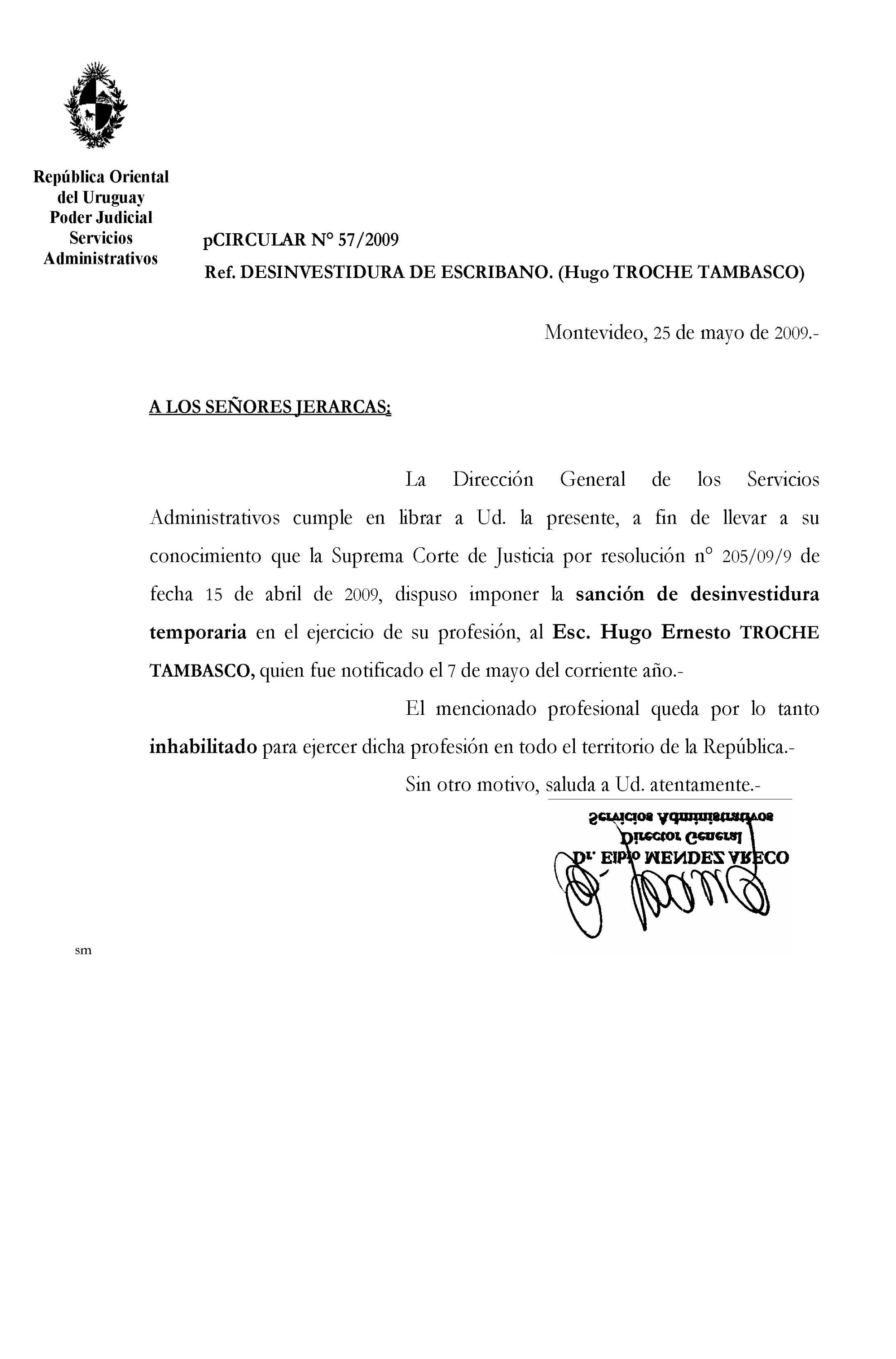 057/2009 - Desinvestidura de Escribano