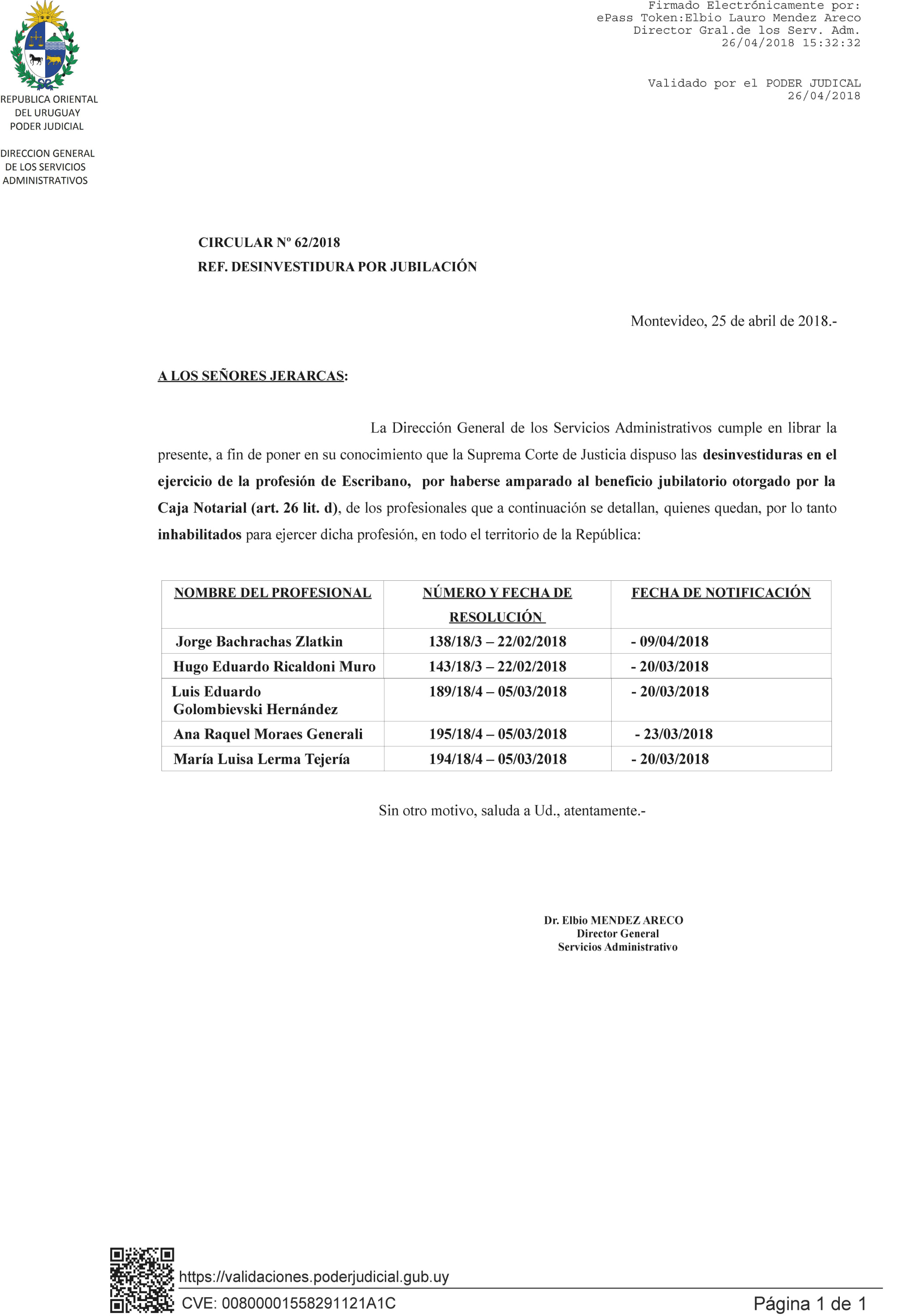 062/2018 - Desinvestidura de Escribanos por jubilación