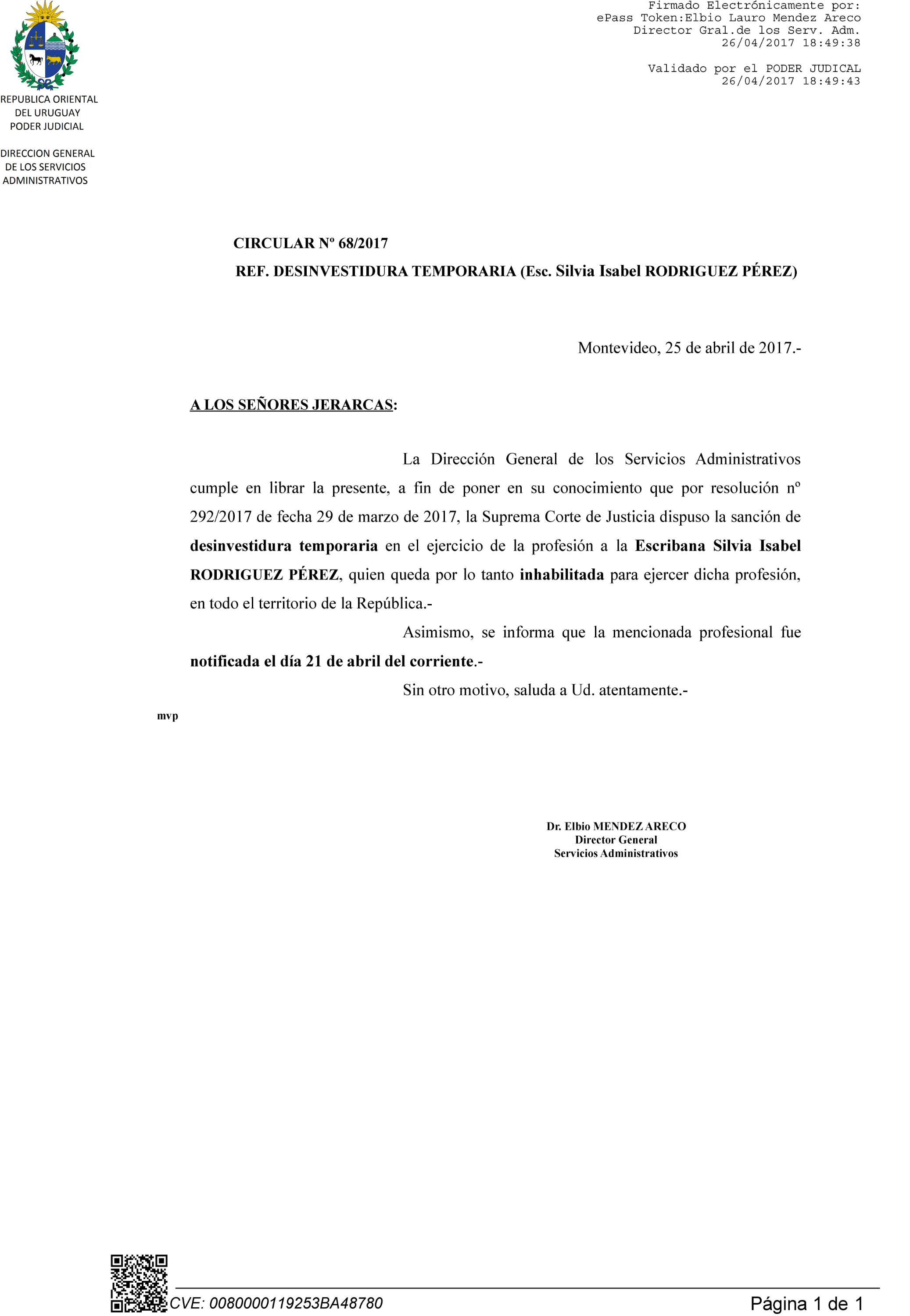 068/2017 - Desinvestidura temporaria de Escribana