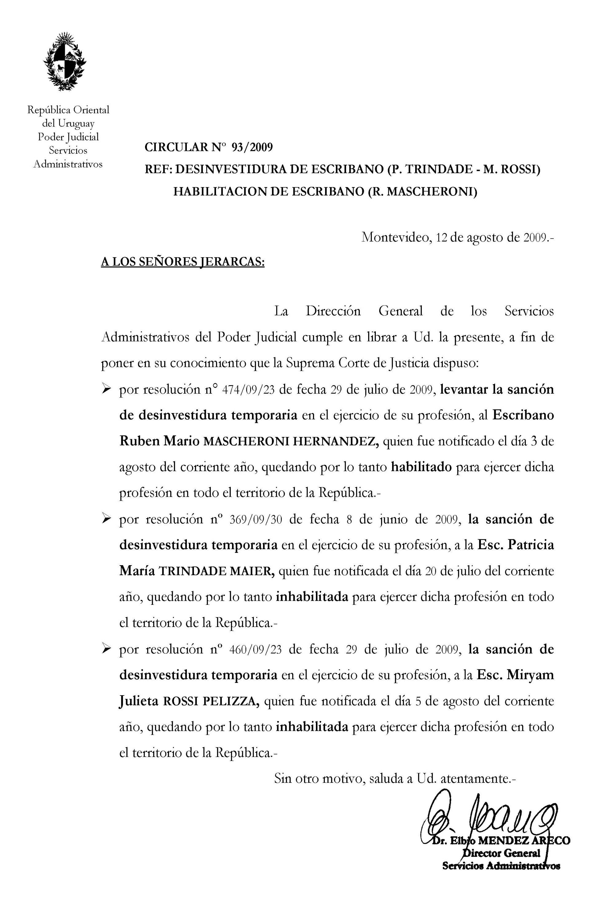 093/2009 - Desinvestidura de Escribano y Habilitación de Escribana