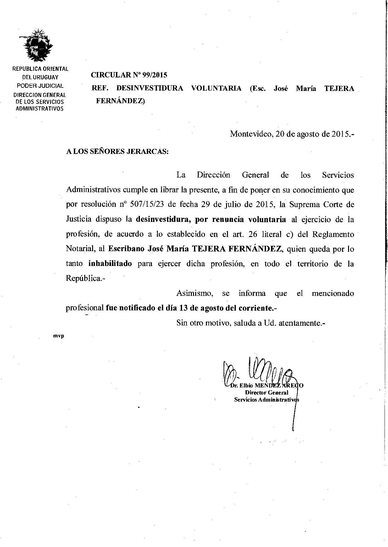 099/2015 - Desinvestidura voluntaria de Escribano