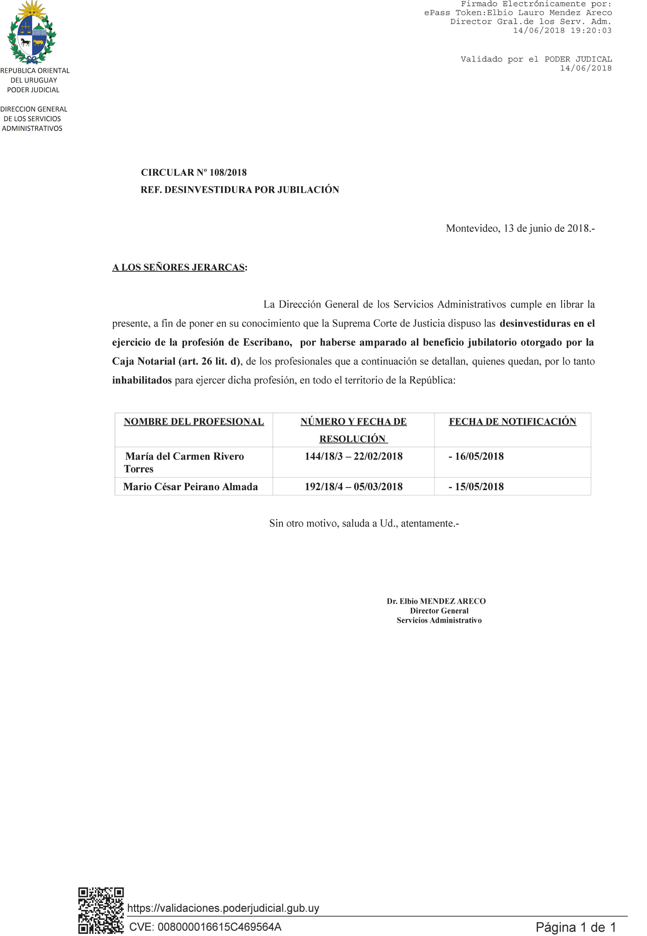108/2018 - Desinvestidura de Escribanos por jubilación