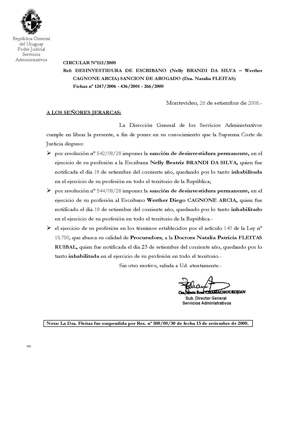 113/2008 - Desinvestidura de Escribano y Suspensión de Abogado