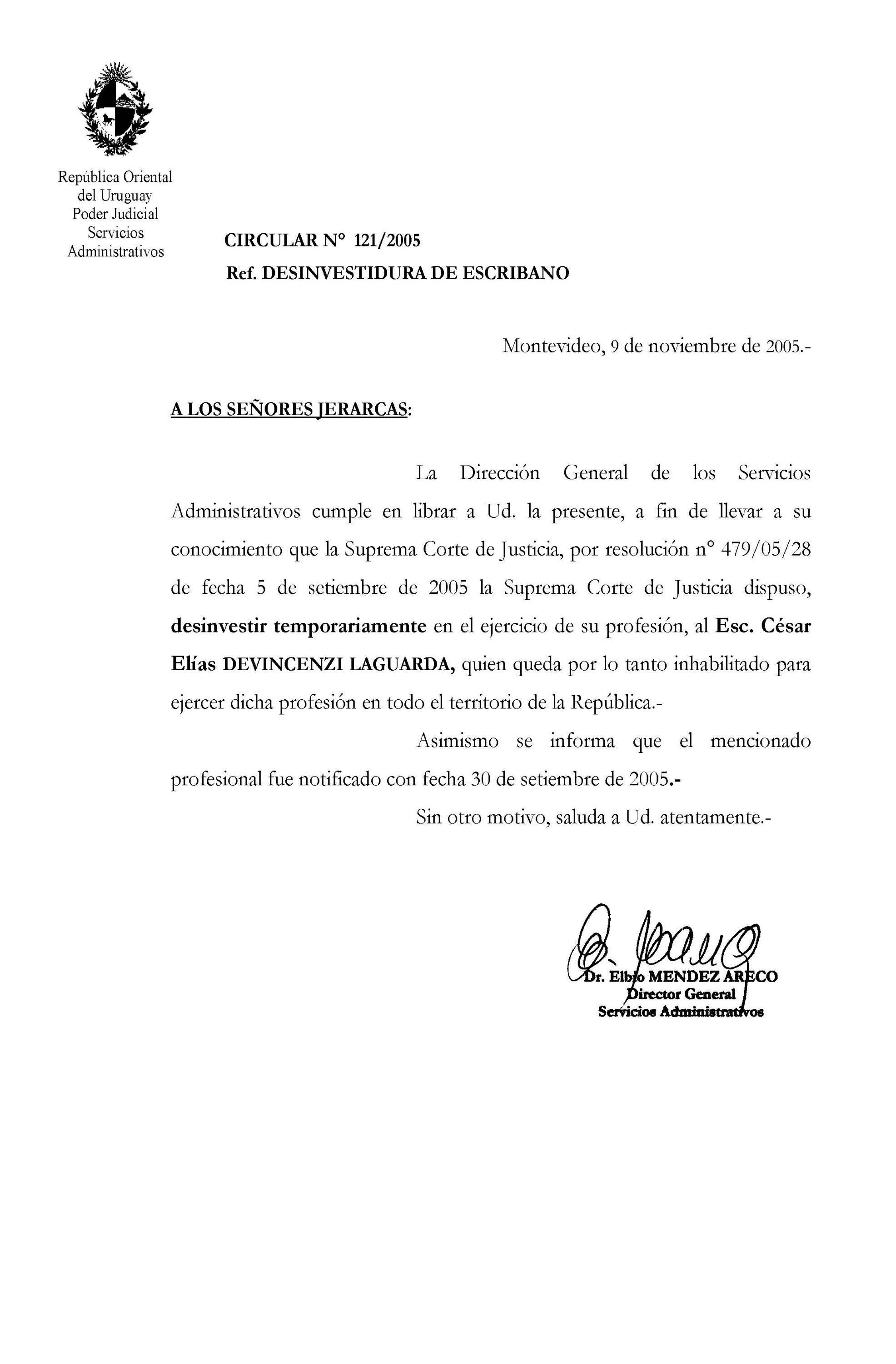 121/2005 - Desinvestidura de Escribano