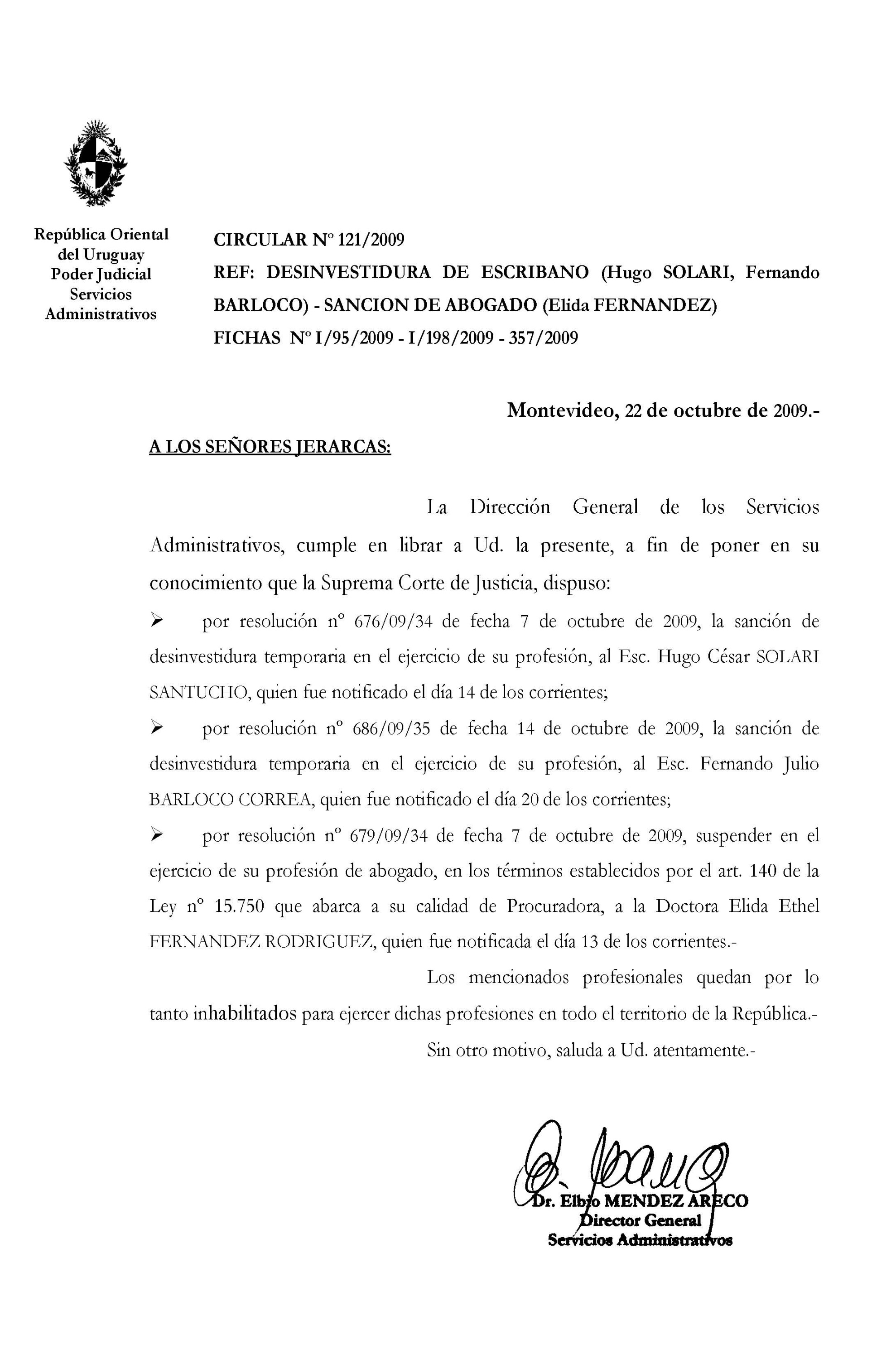 121/2009 - Desinvestidura de Escribano