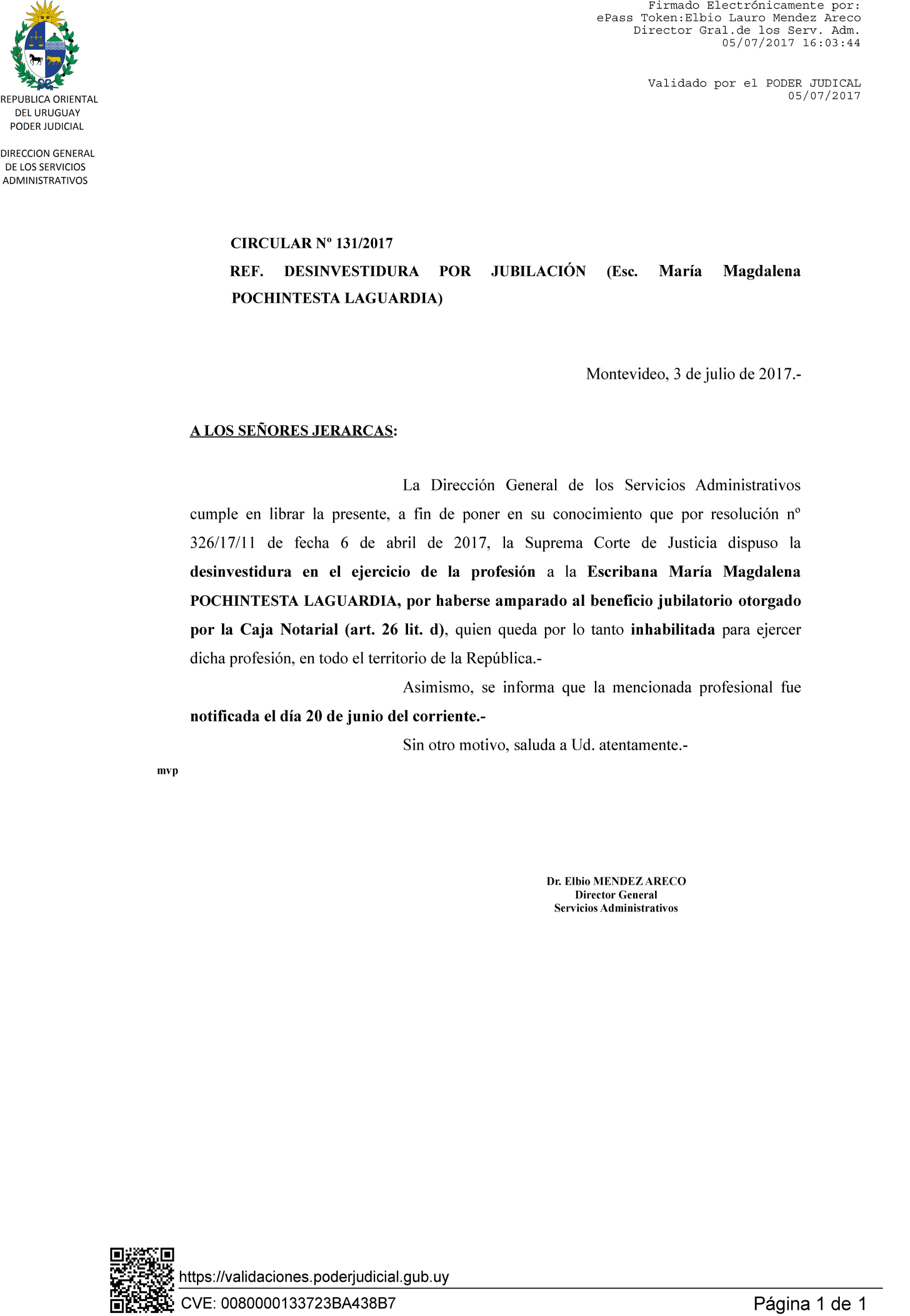 131/2017 - Desinvestidura de Escribana por jubilación