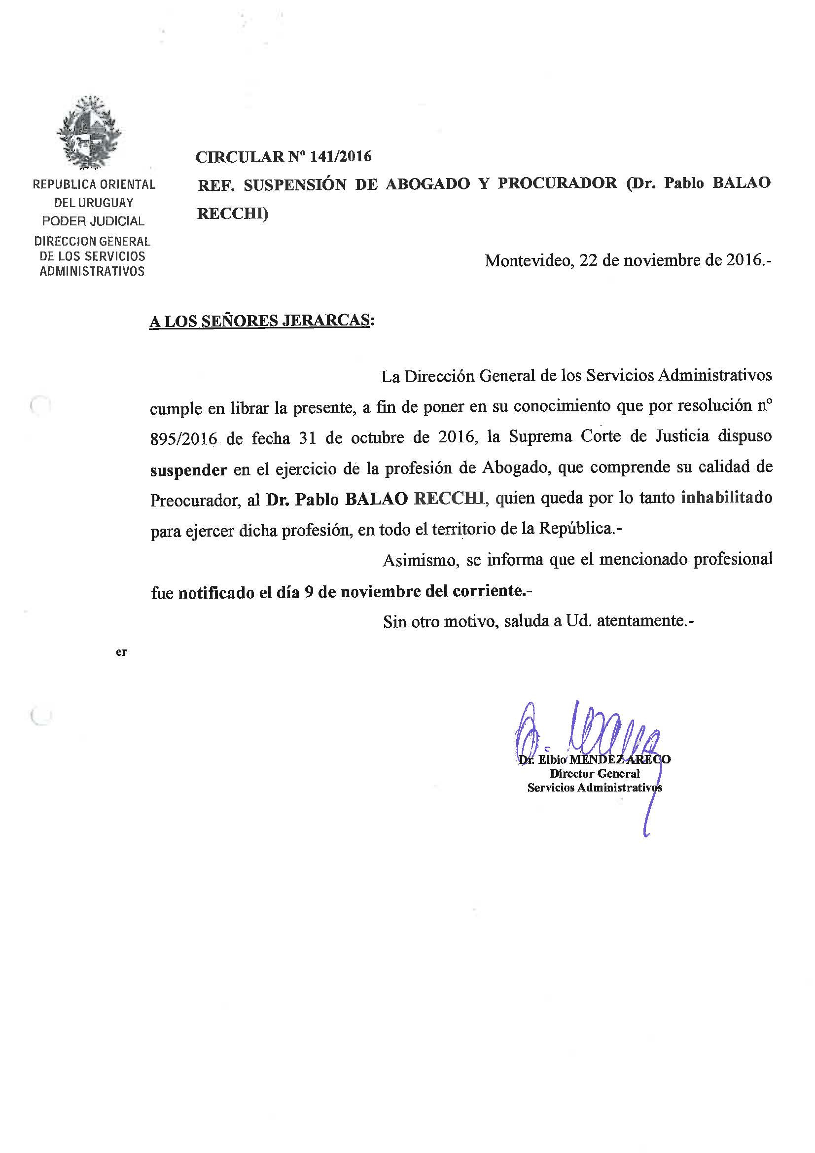 141/2016 - Suspensión de Abogado y Procurador