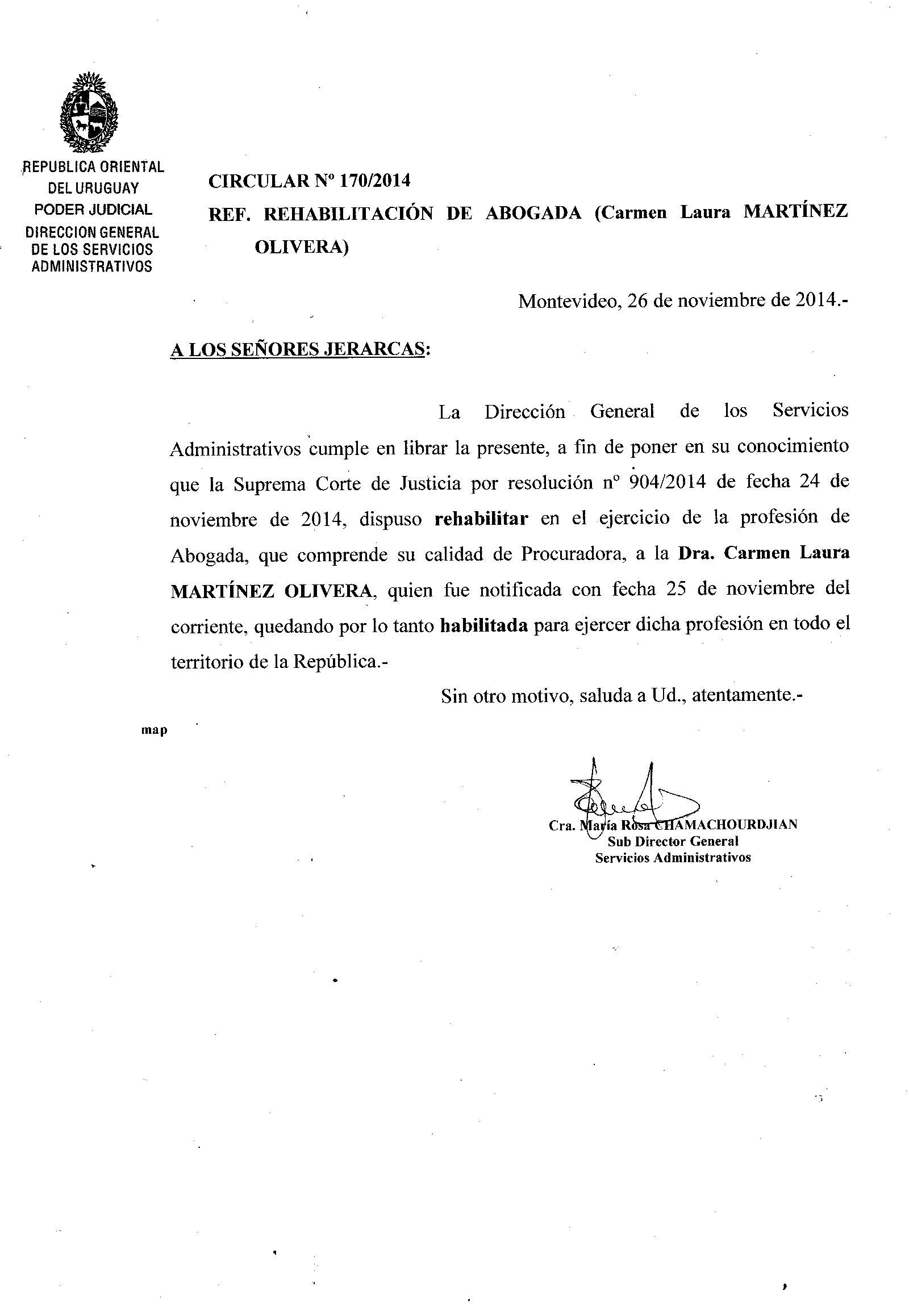 170/2014 - Rehabilitación de abogada