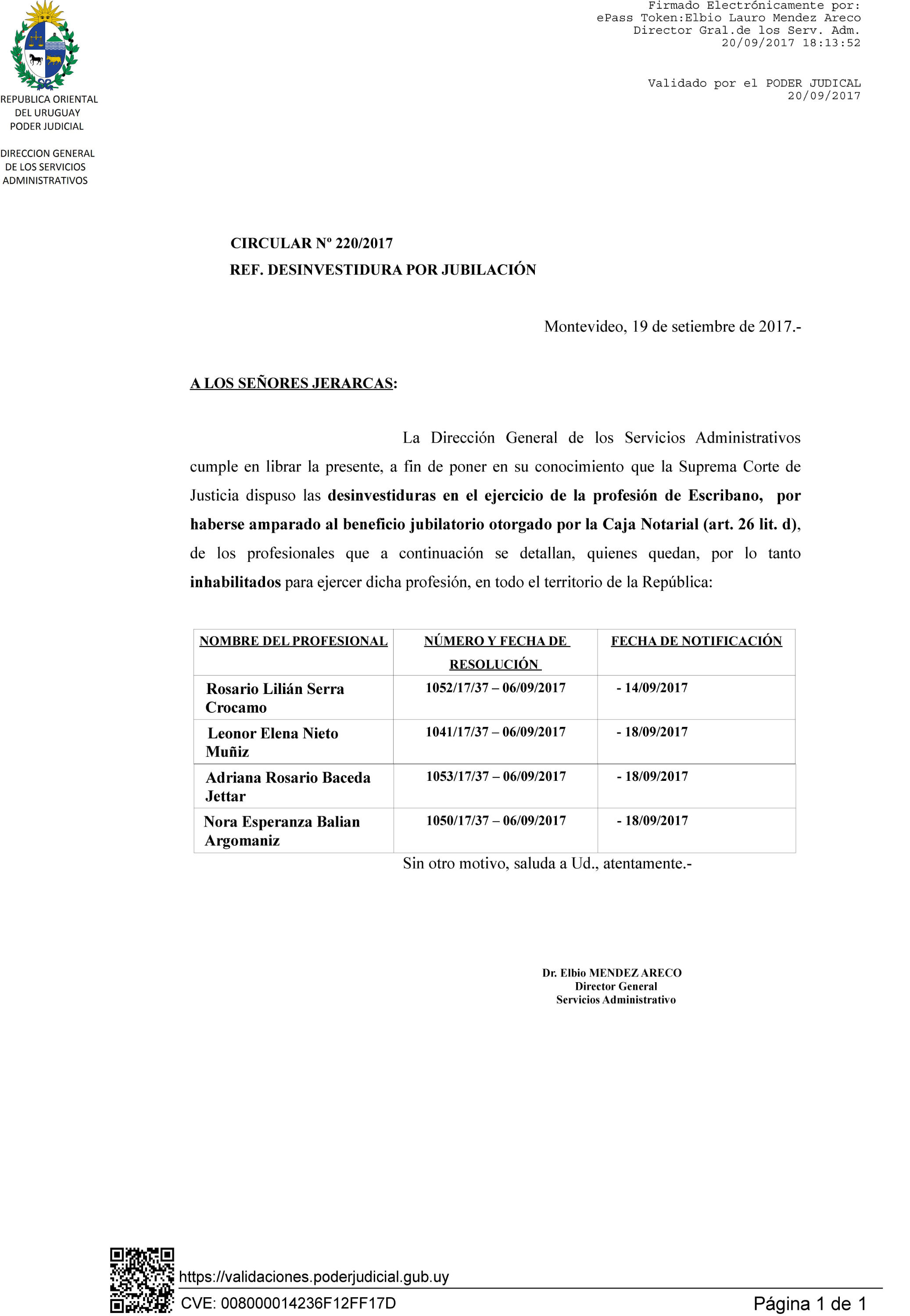 220/2017 - Desinvestidura de Escribano por jubilación