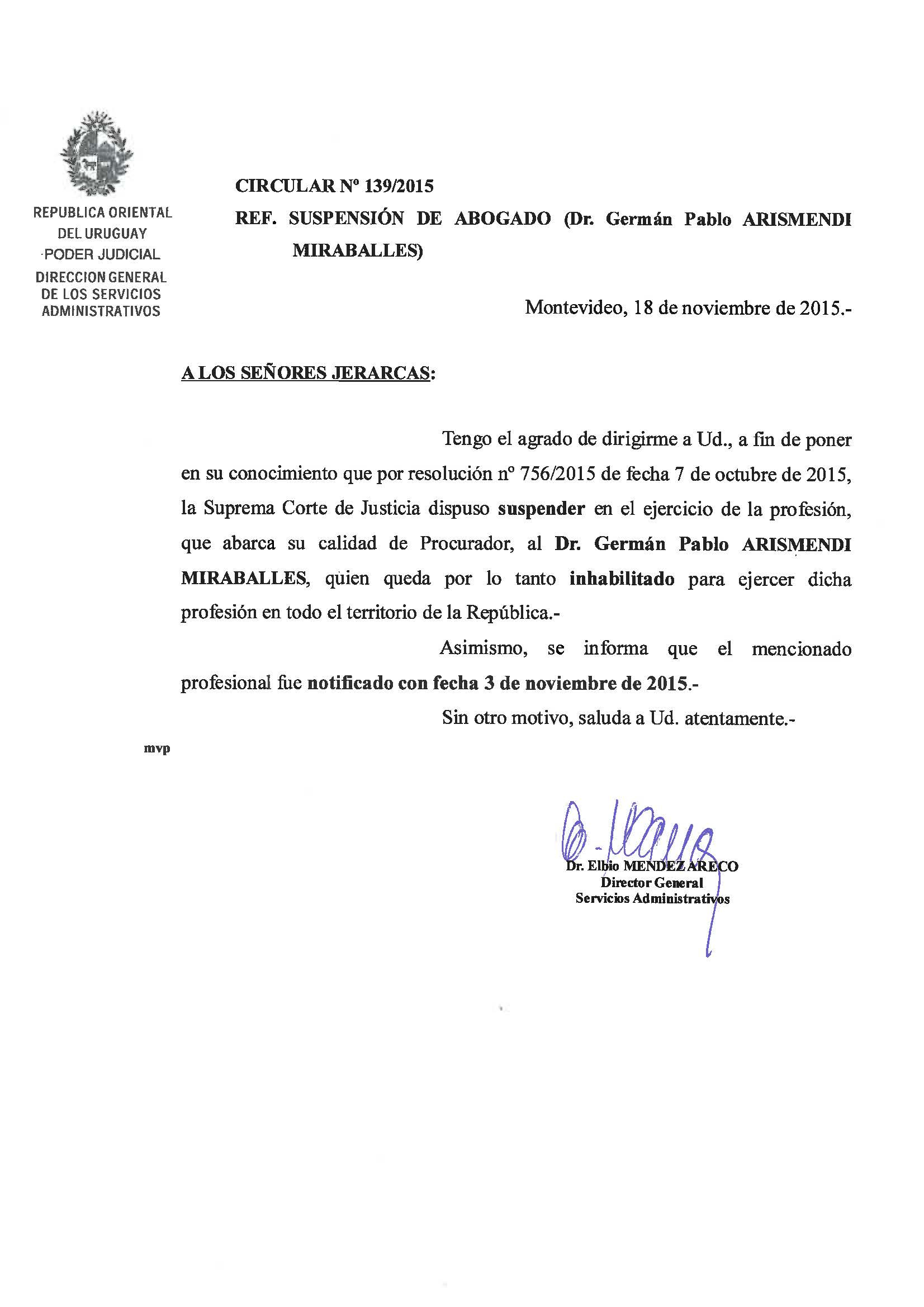 139/2015 - Suspensión de Abogado