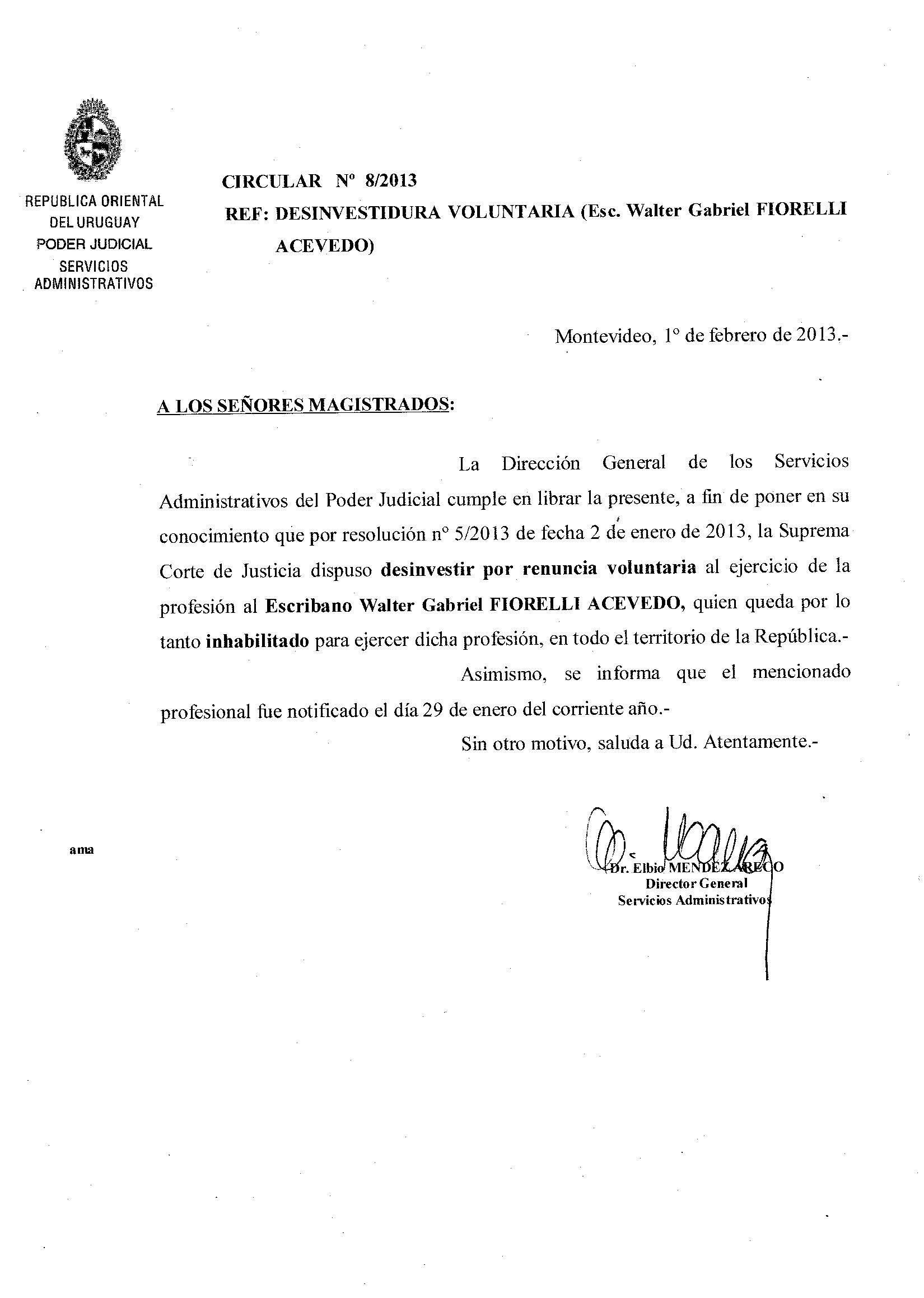 008/2013 - Desinvestidura voluntaria de Escribano