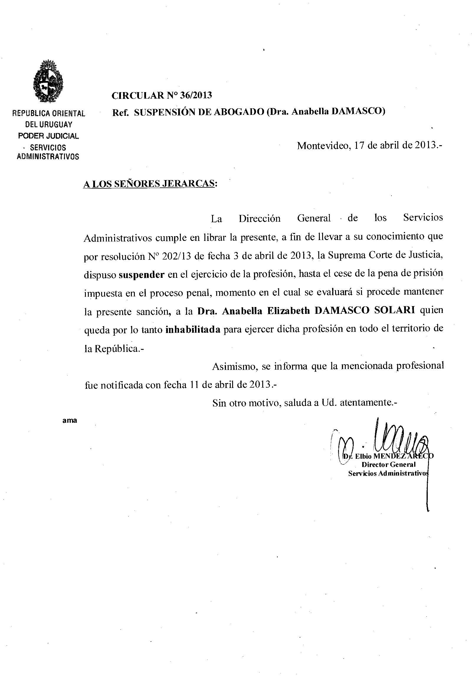 036/2013 - Suspensión de Abogado