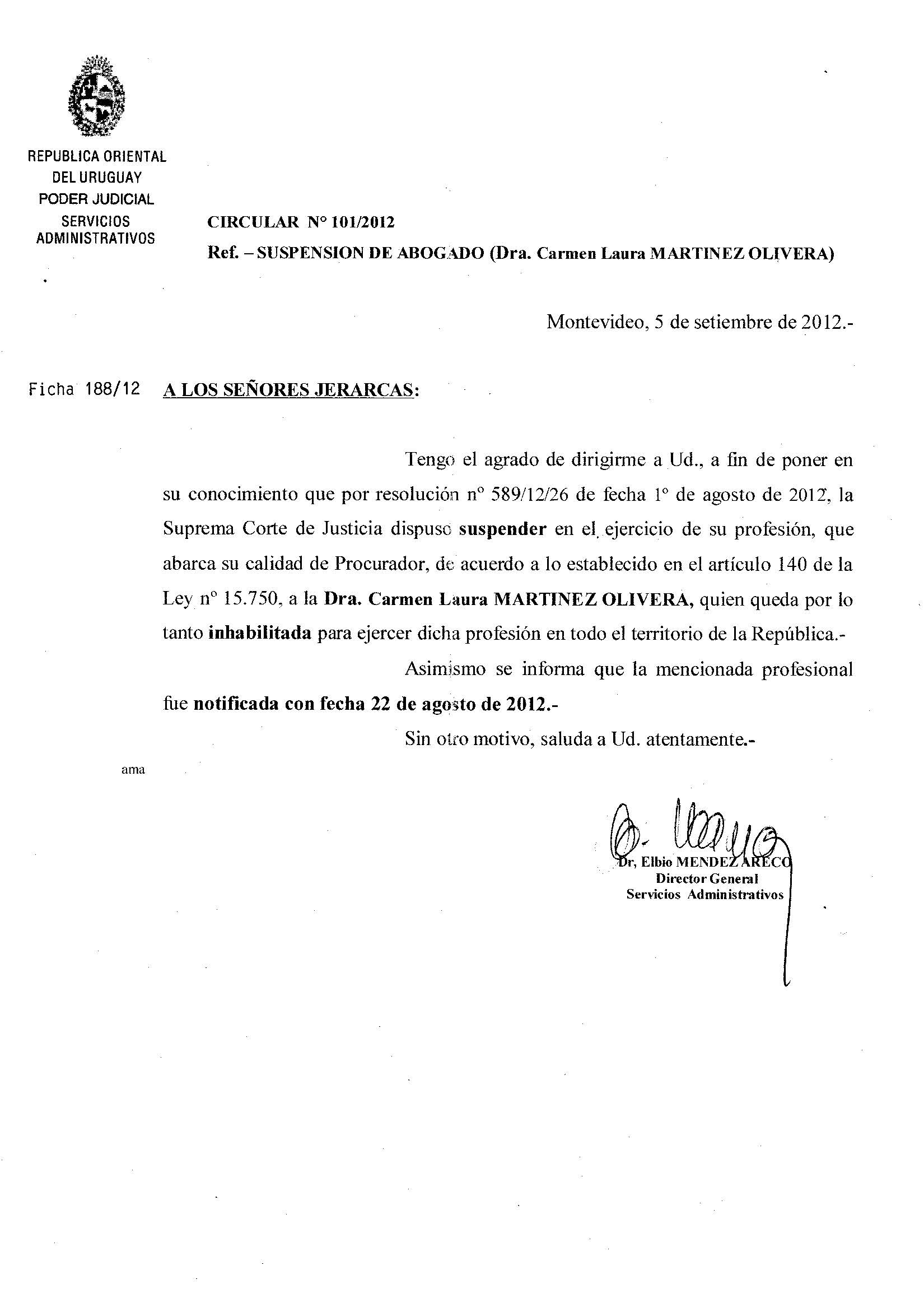 101/2012 - Suspensión de Abogado