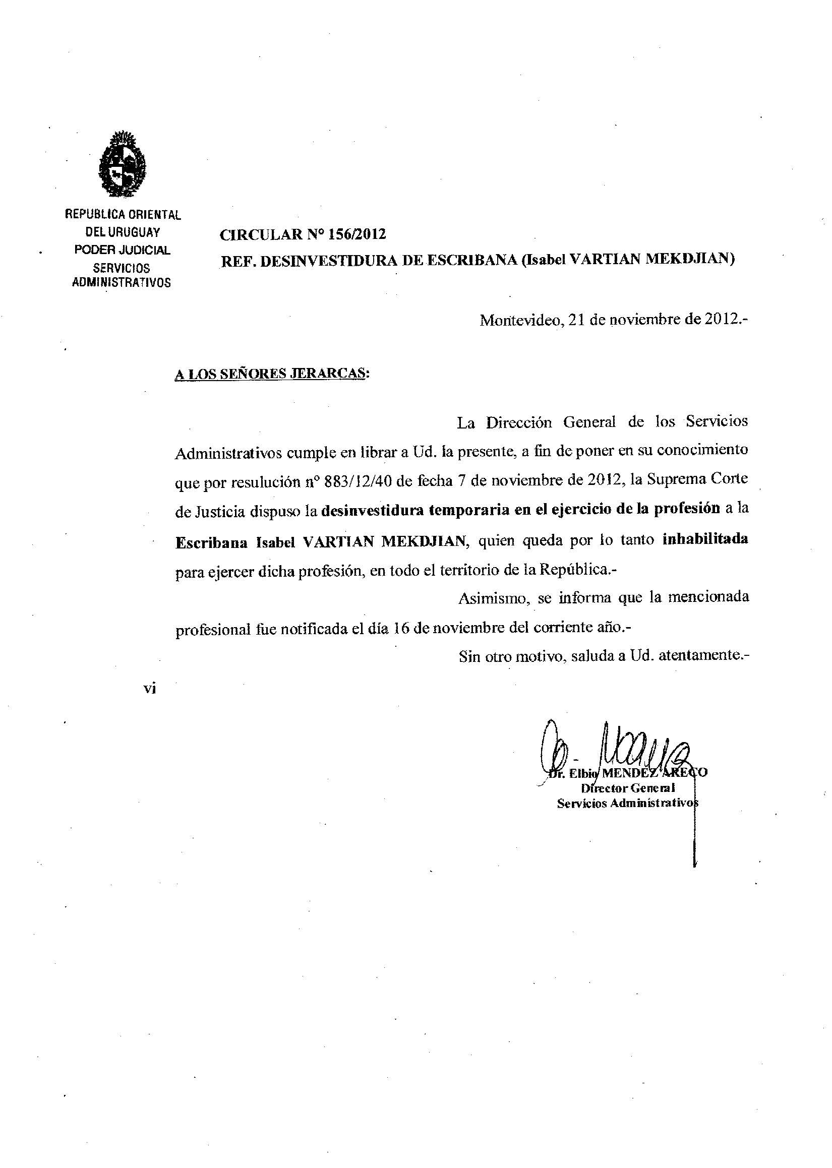 156/2012 - Desinvestidura de Escribano