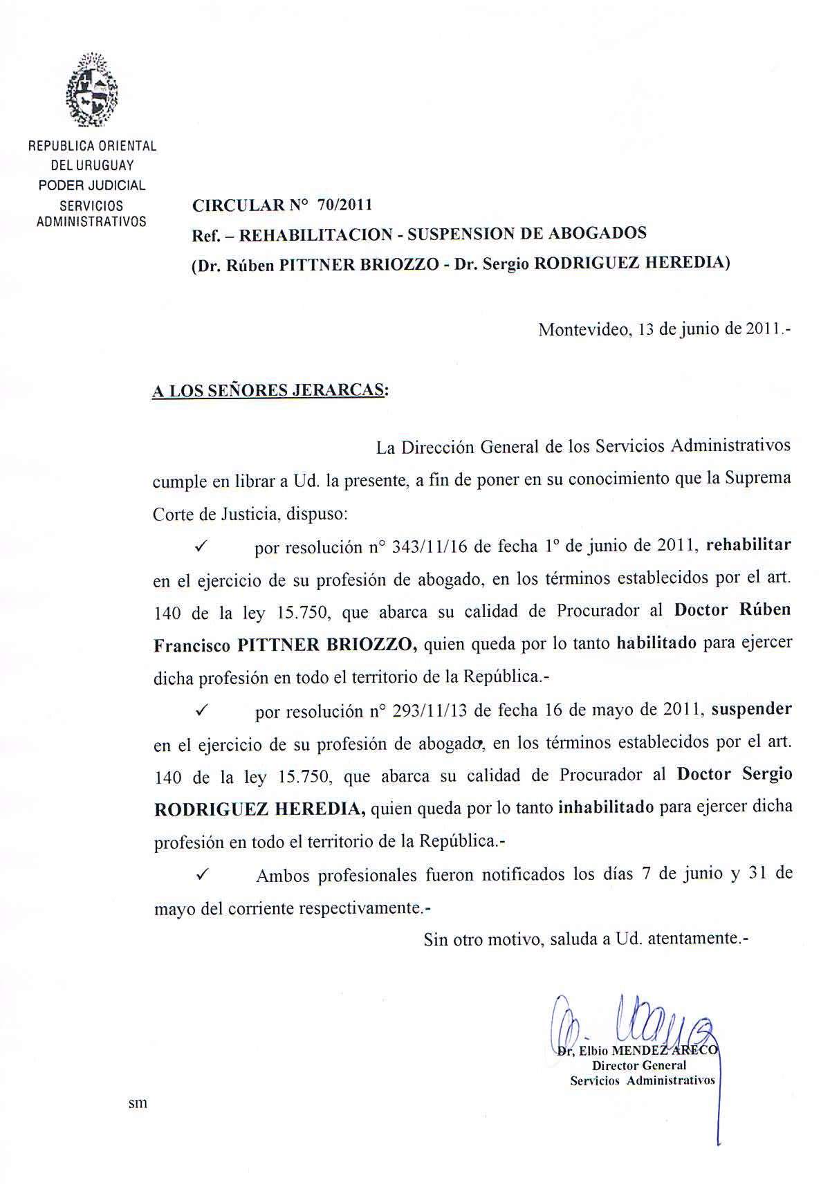 070/2011 - Rehabilitación de Abogado - Inhabilitación de Abogado