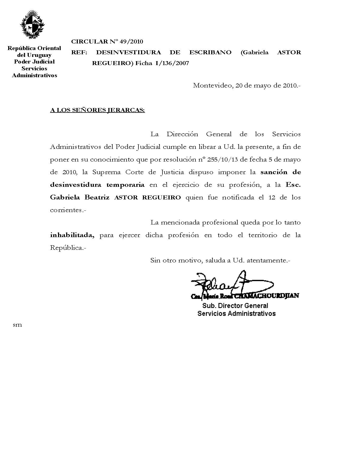 049/2010 - Desinvestidura de Escribana
