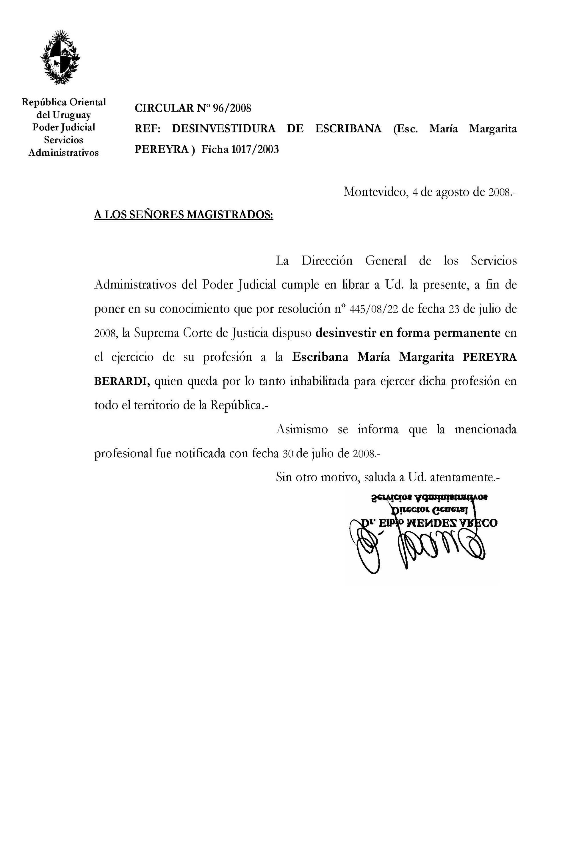 096/2008 - Desinvestidura de Escribana