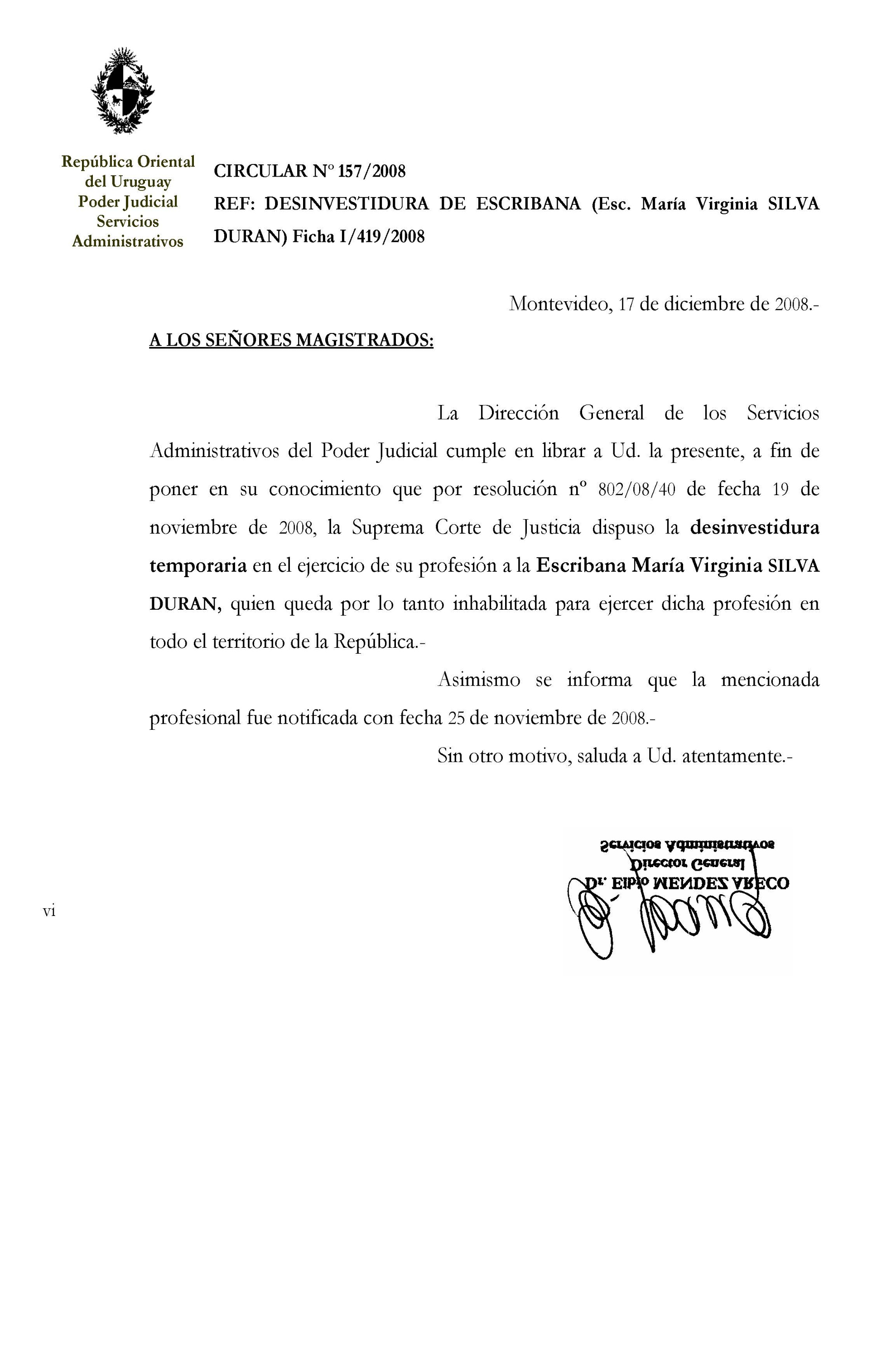 157/2008 - Desinvestidura de Escribana