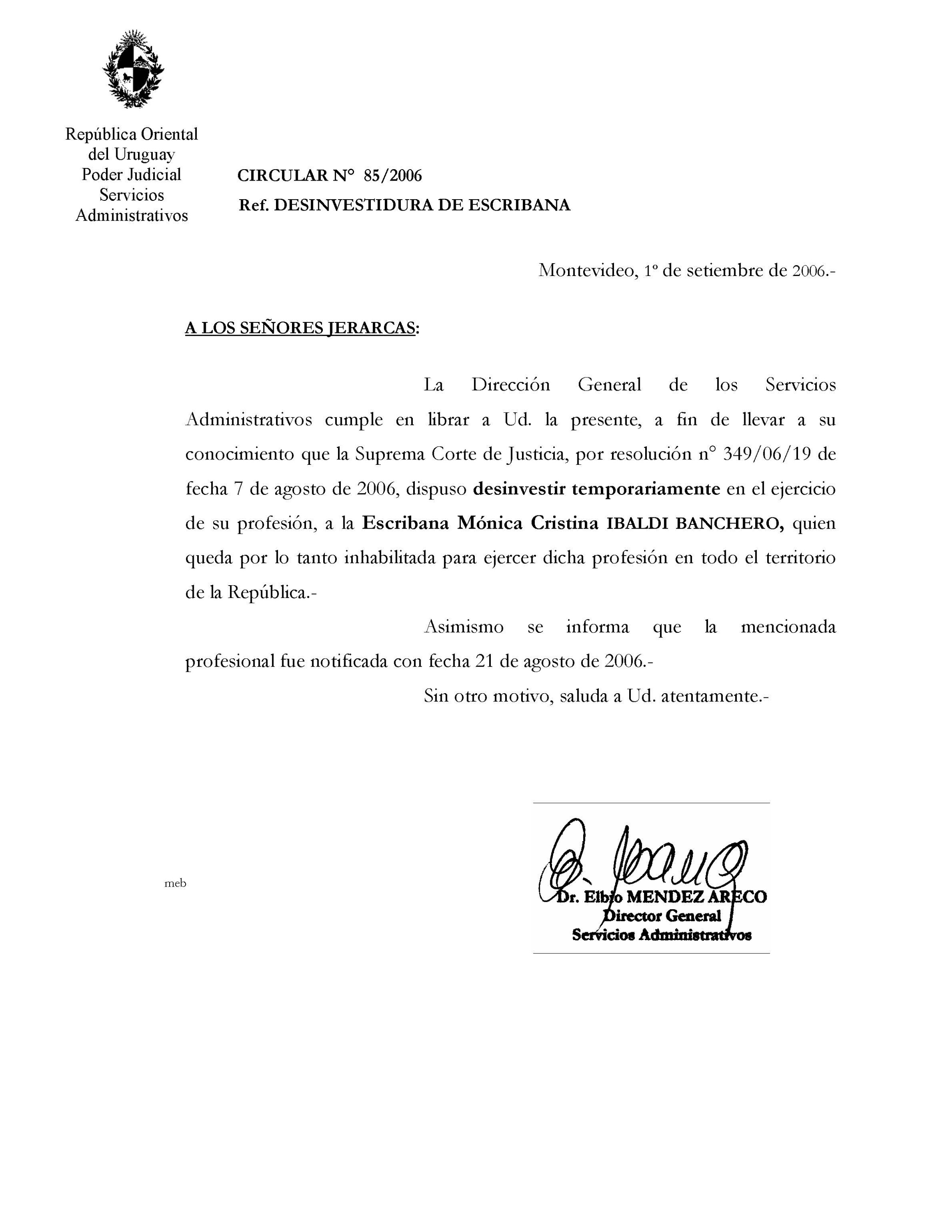 085/2006 - Desinvestidura de Escribana