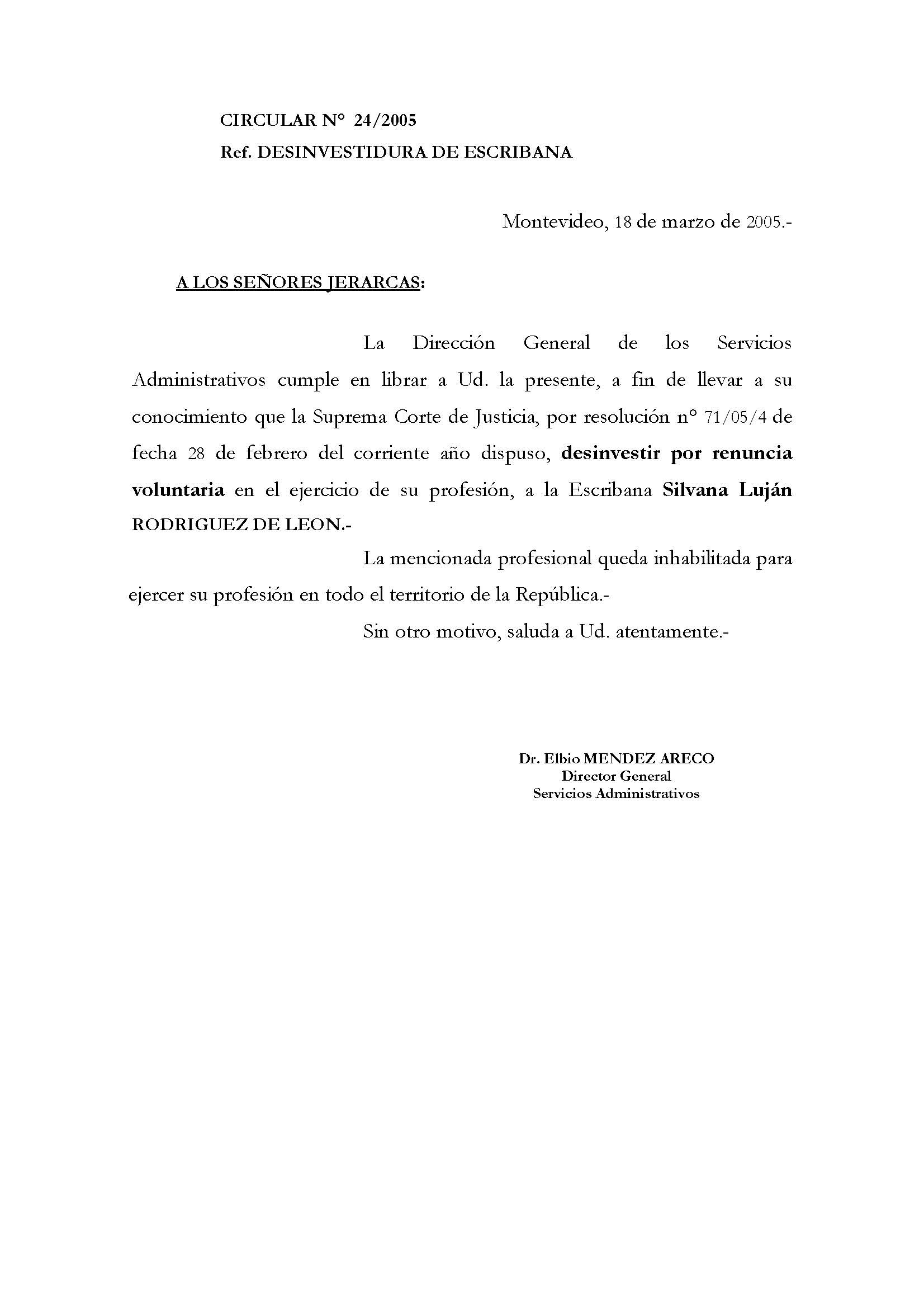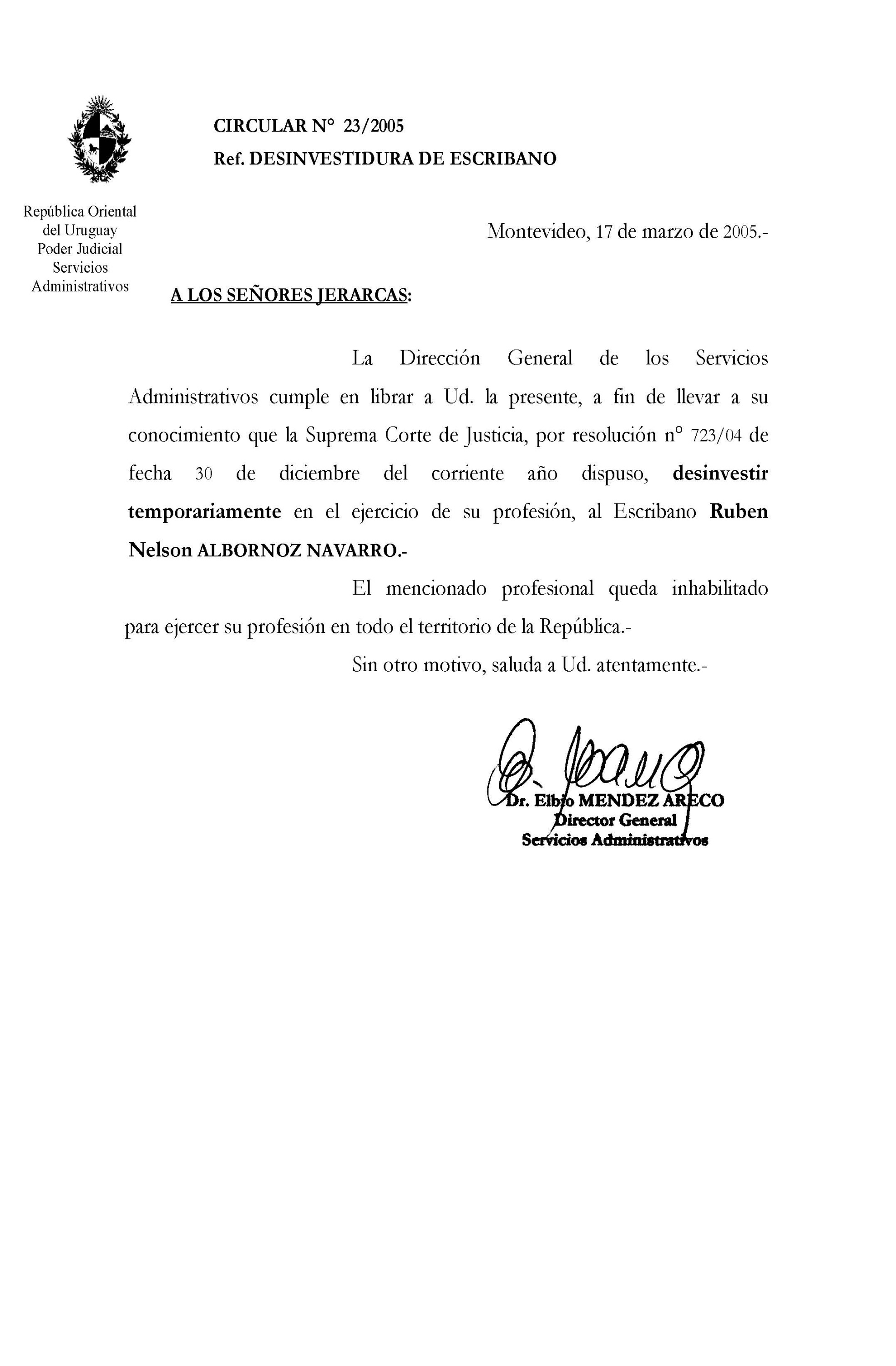 023/2005 - Desinvestidura de Escribano