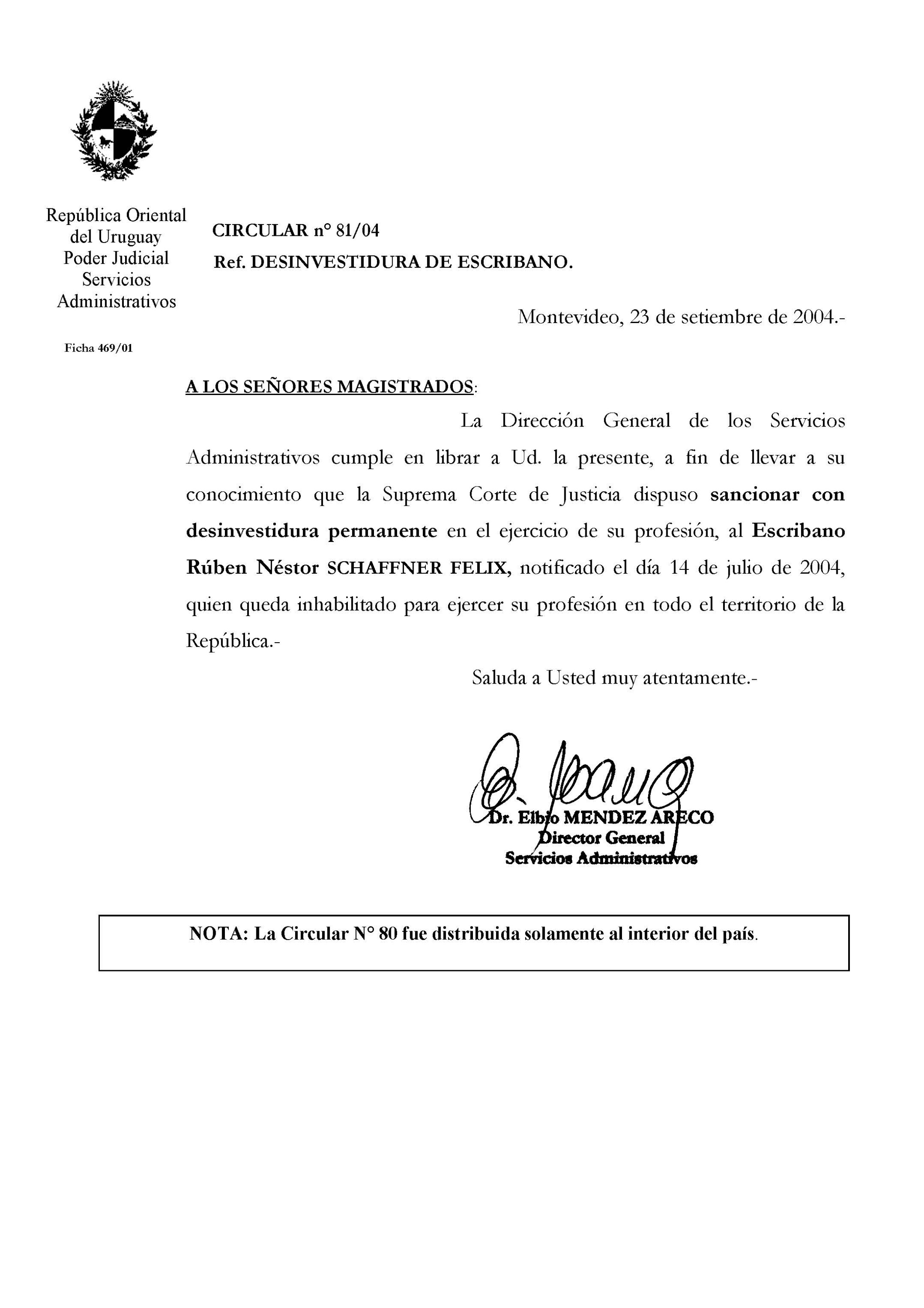081/2004 - Desinvestidura de Escribano