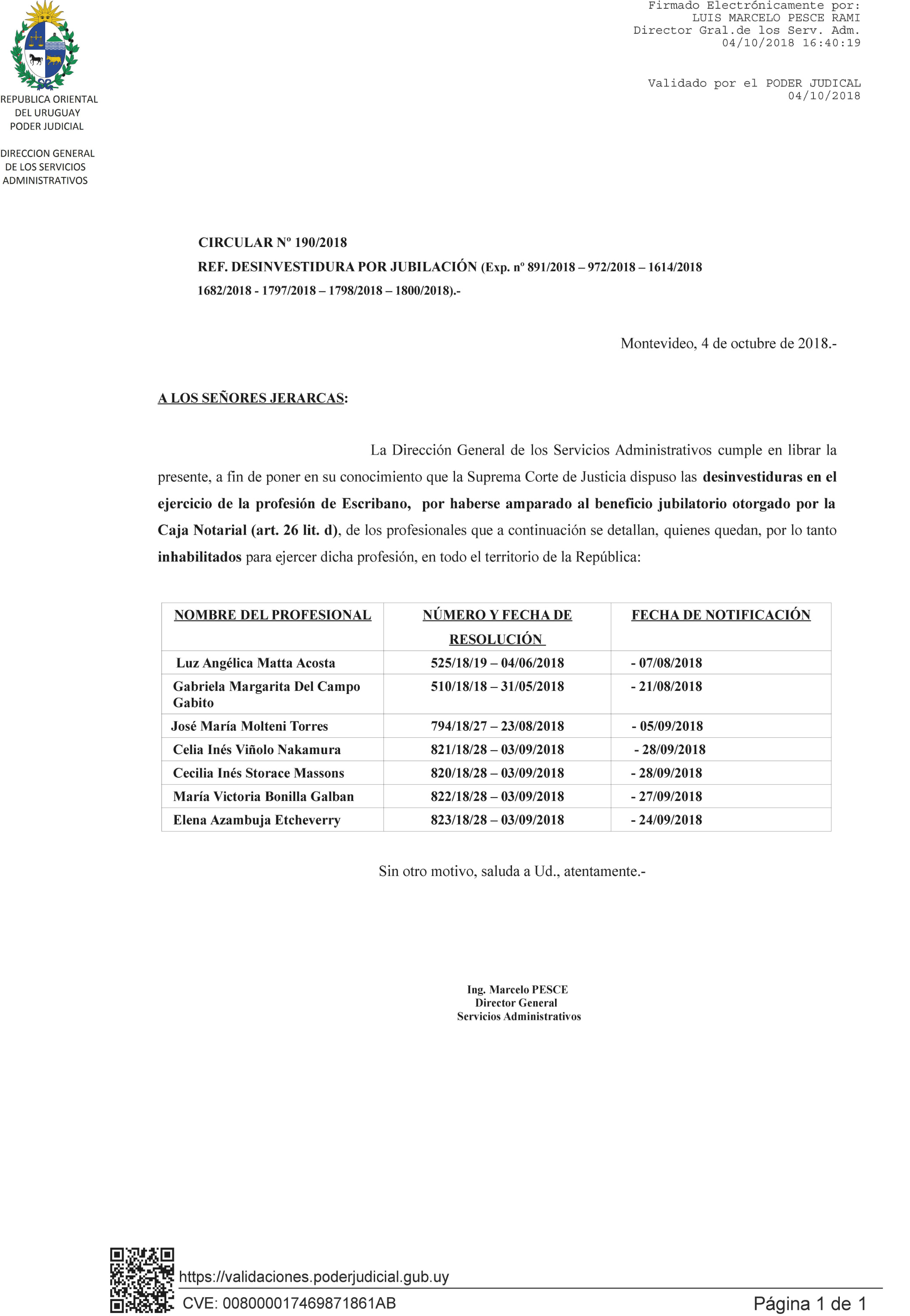 190/2018 - Desinvestiduras de Escribanos por jubilación