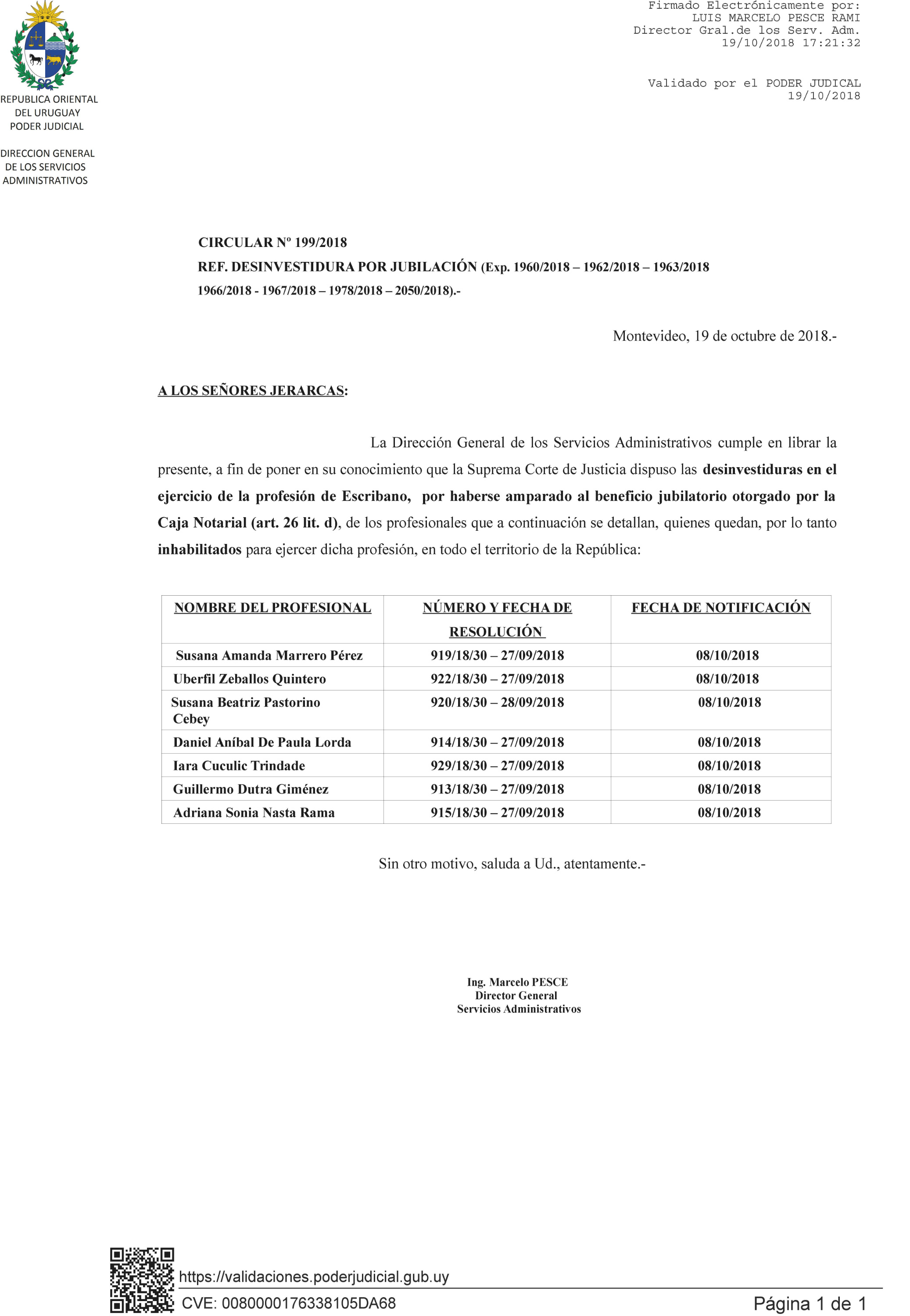 199/2018 - Desinvestidura de Escribanos por jubilación