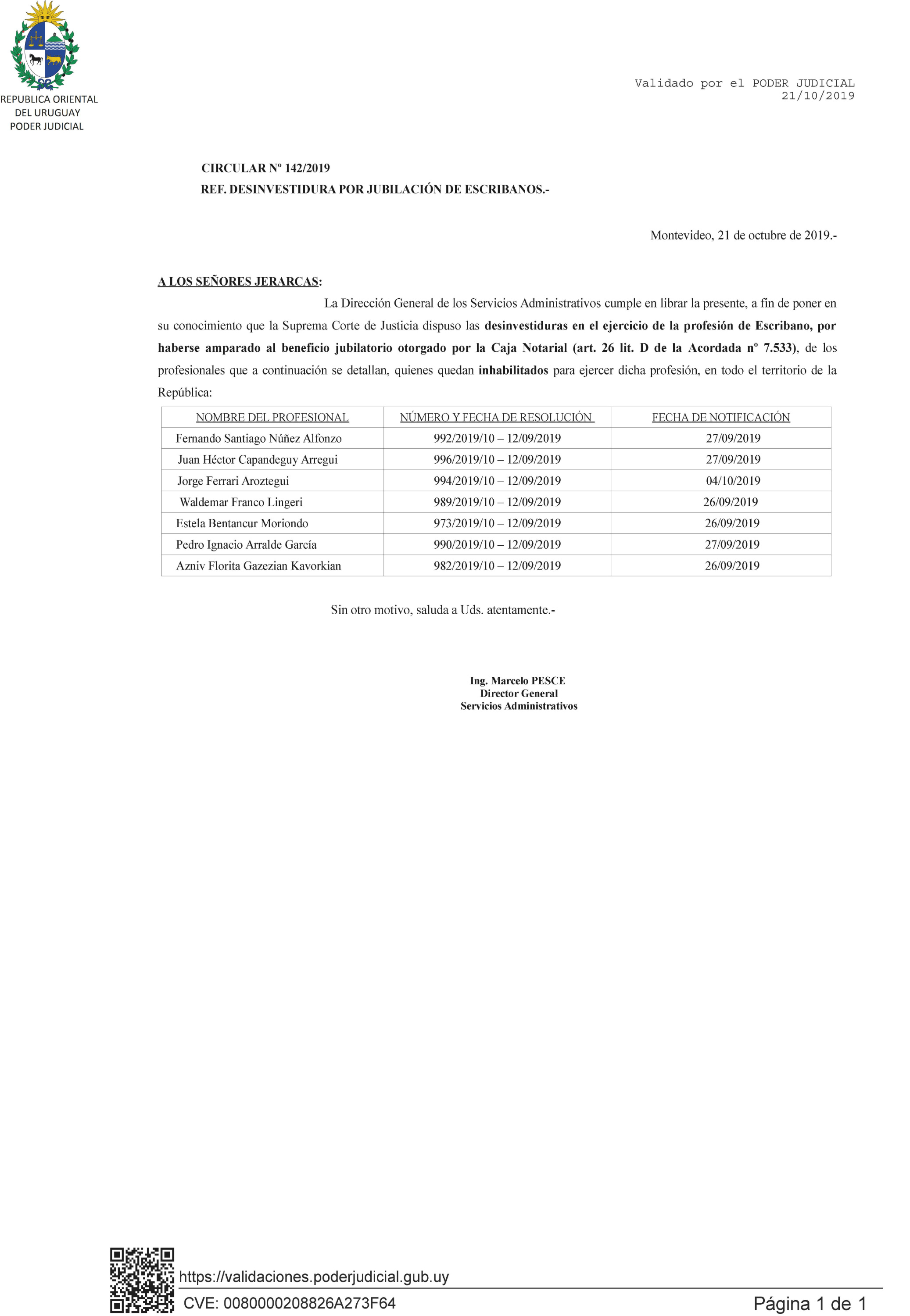142/2019 - Desinvestidura de Escribanos por jubilación