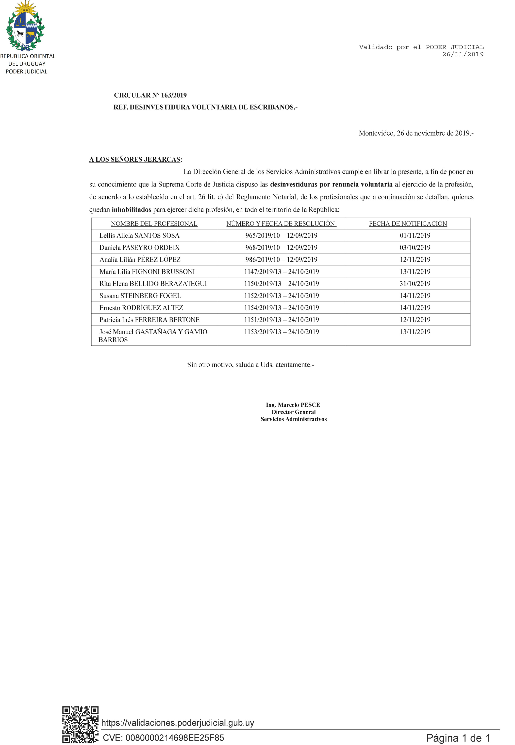 163/2019 - Desinvestidura voluntarias de Escribanos