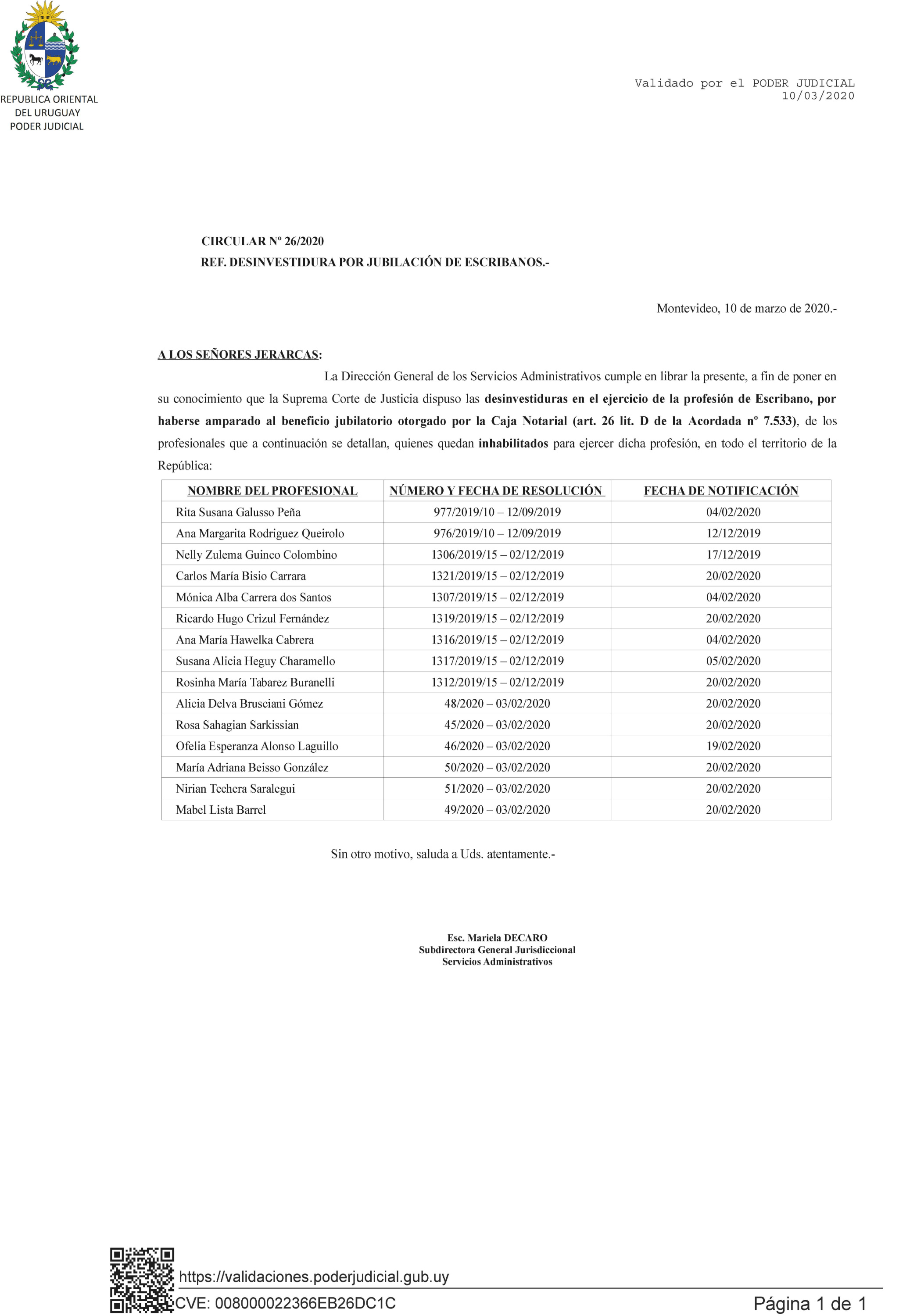 026/2020 - Desinvestidura de Escribanos por jubilación