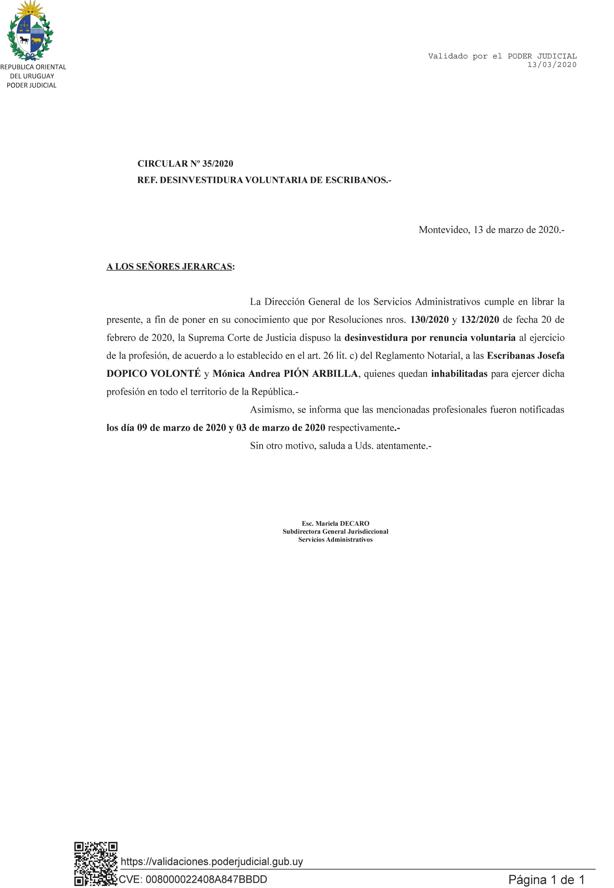 035/2020 - Desinvestidura voluntaria de Escribanos