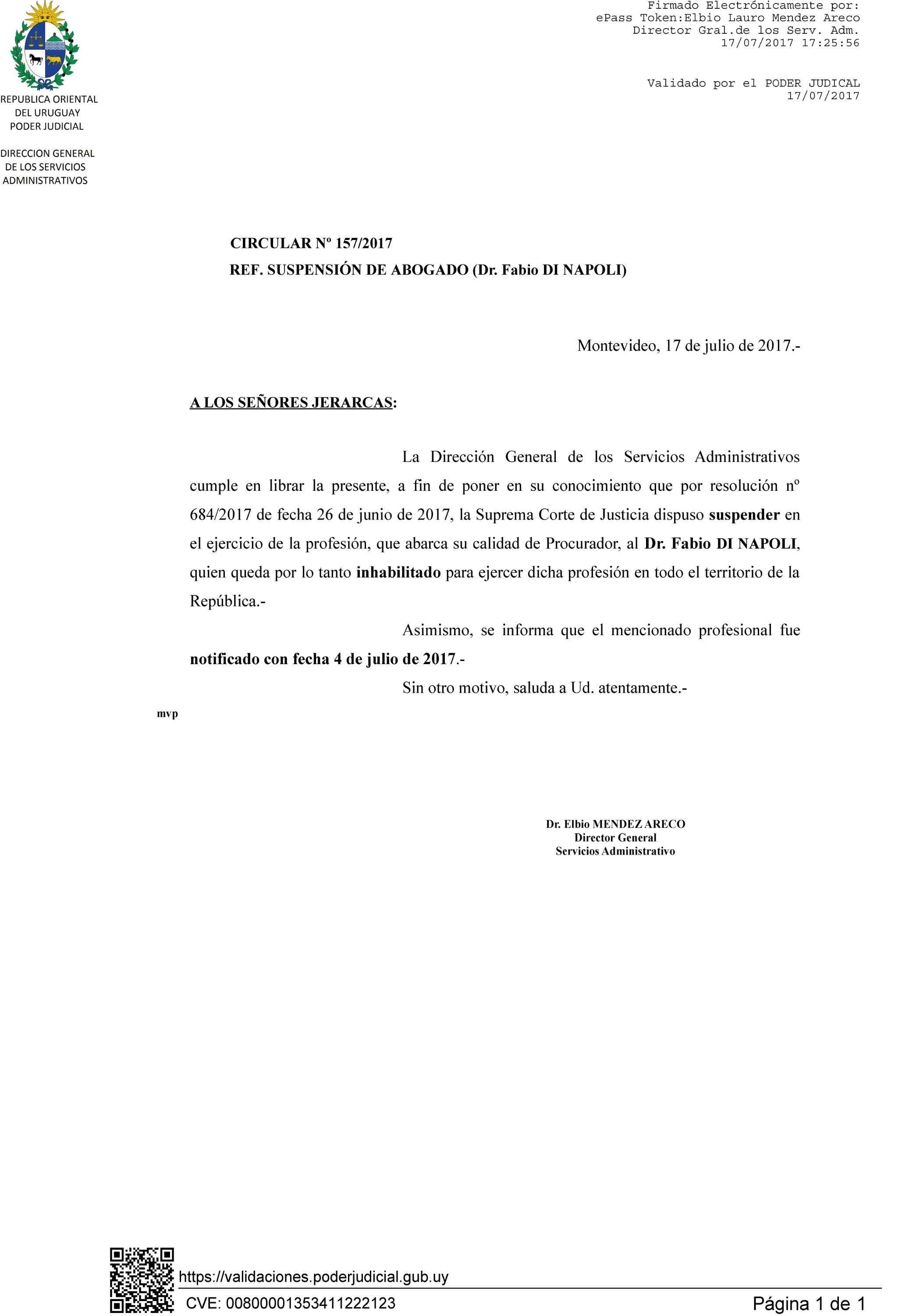 157/2017 - Suspensión de Abogado
