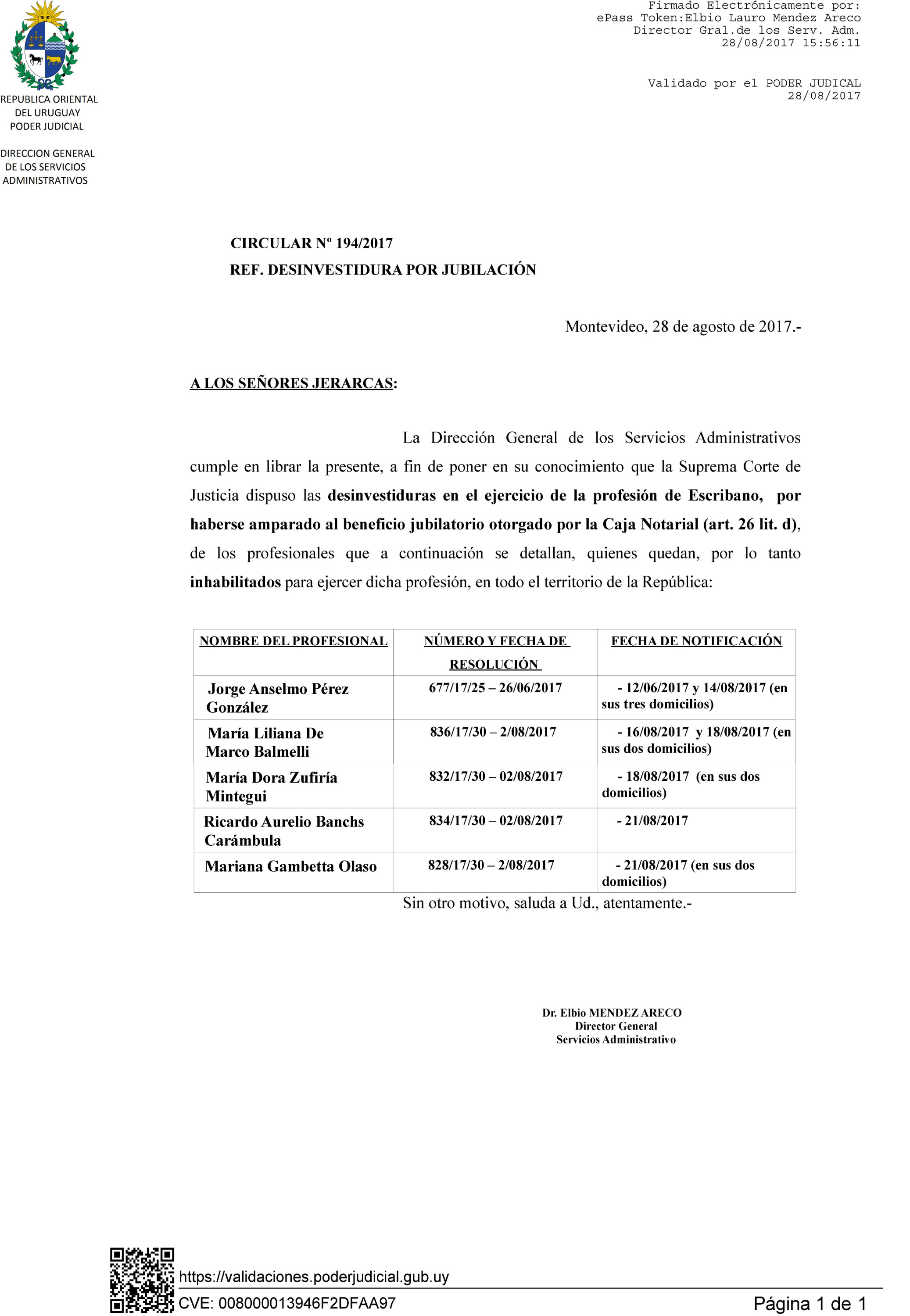 194/2017 - Desinvestidura de Escribano por jubilación