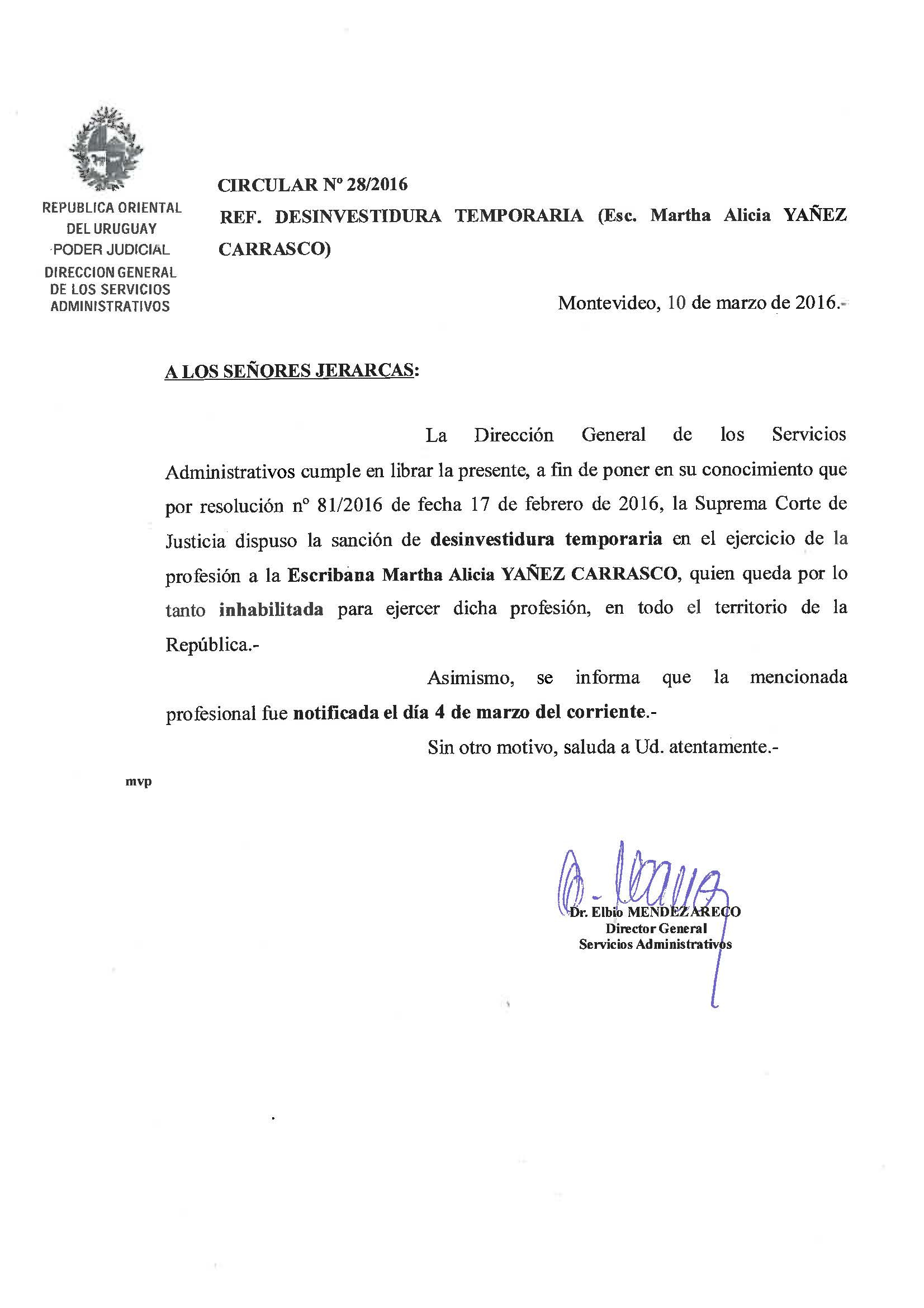 028/2016 - Desinvestidura temporaria de Escribano