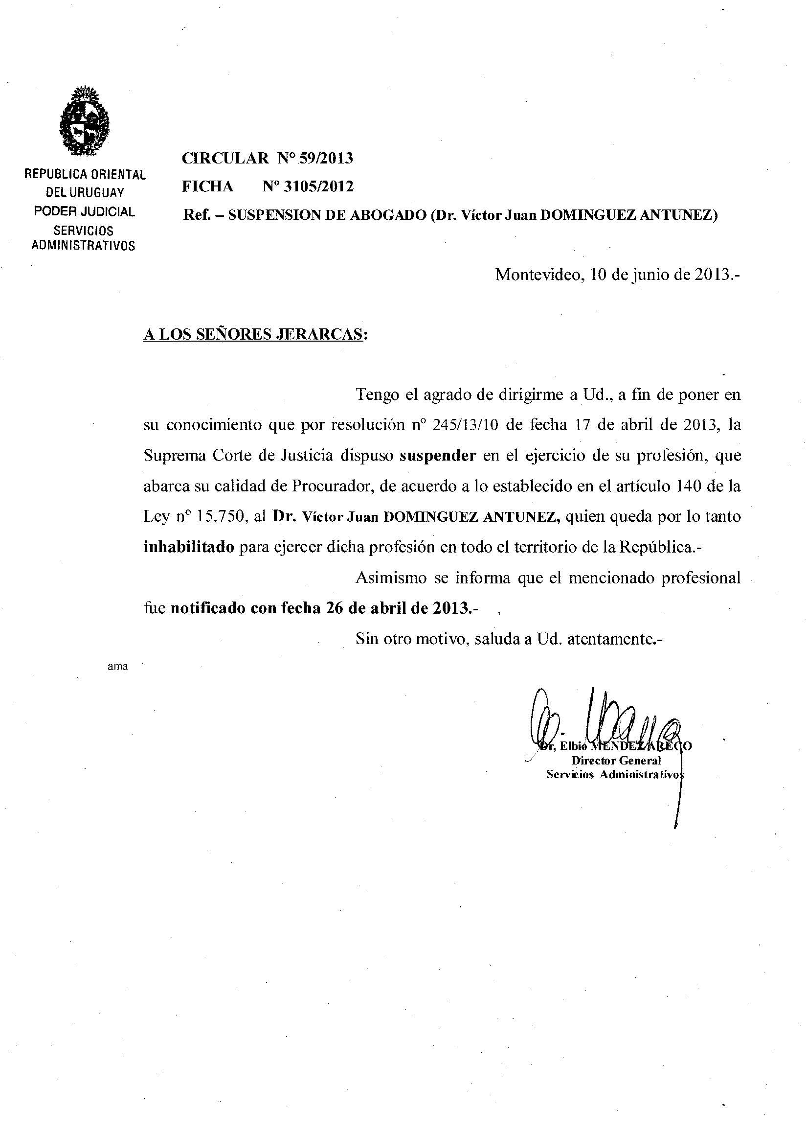 059/2013 - Suspensión de Abogado