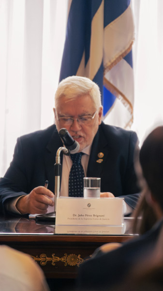 Al hacer uso de la palabra, el Dr. John Pérez Brignani señaló que "con la firma de este convenio entre el Poder Judicial y el Banco Hipotecario del Uruguay, damos un paso muy importante para mejorar la accesibilidad a la vivienda de quienes sostienen, con esfuerzo y compromiso, el funcionamiento de la justicia de todo el país".
