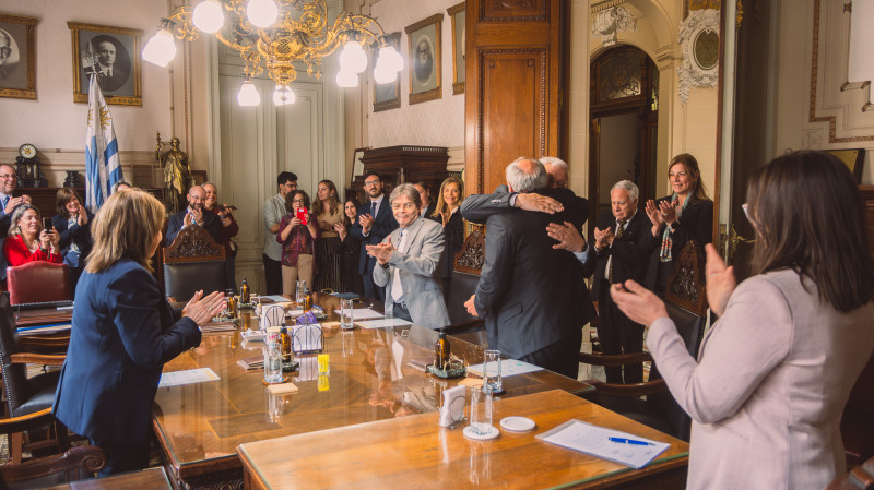 El nuevo integrante de la corporación fue recibido esta tarde por sus colegas y algunos jerarcas en el Palacio Piria (edificio sede de la SCJ), pasando luego a su despacho para comenzar el ejercicio de sus funciones.