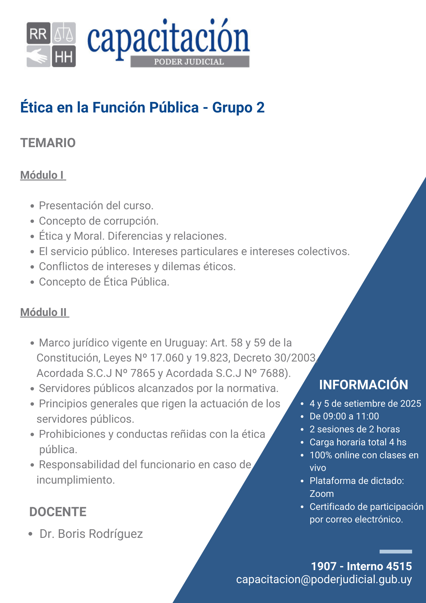 - Formulario de Evaluación del Curso: Posteriormente se enviará link por correo electrónico. El mismo será de forma anónima.